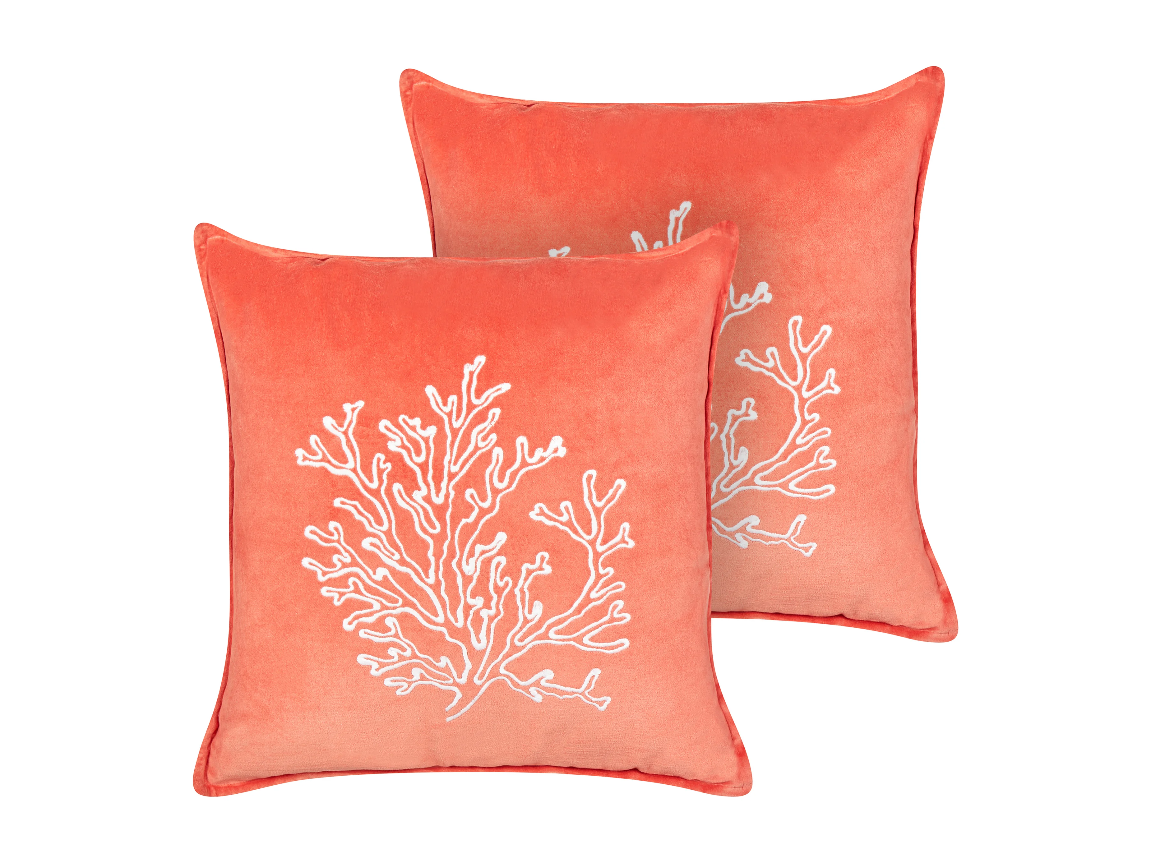 Lot de 2 coussins décoratifs NORI Velours 45 x 45 cm Corail Motif de plante