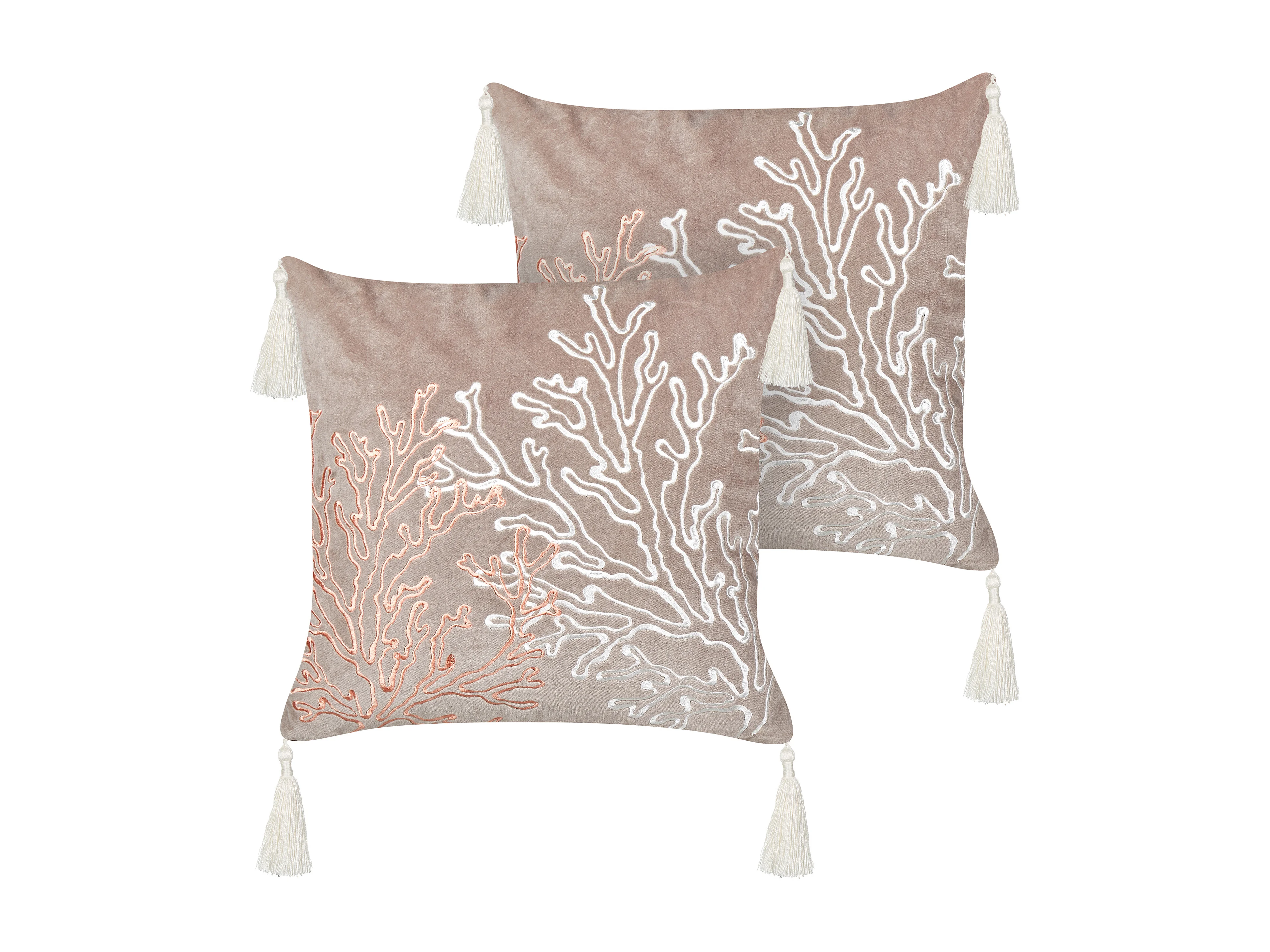Lot de 2 coussins décoratifs MAZZAELLA Velours 45 x 45 cm Taupe Motif de plante