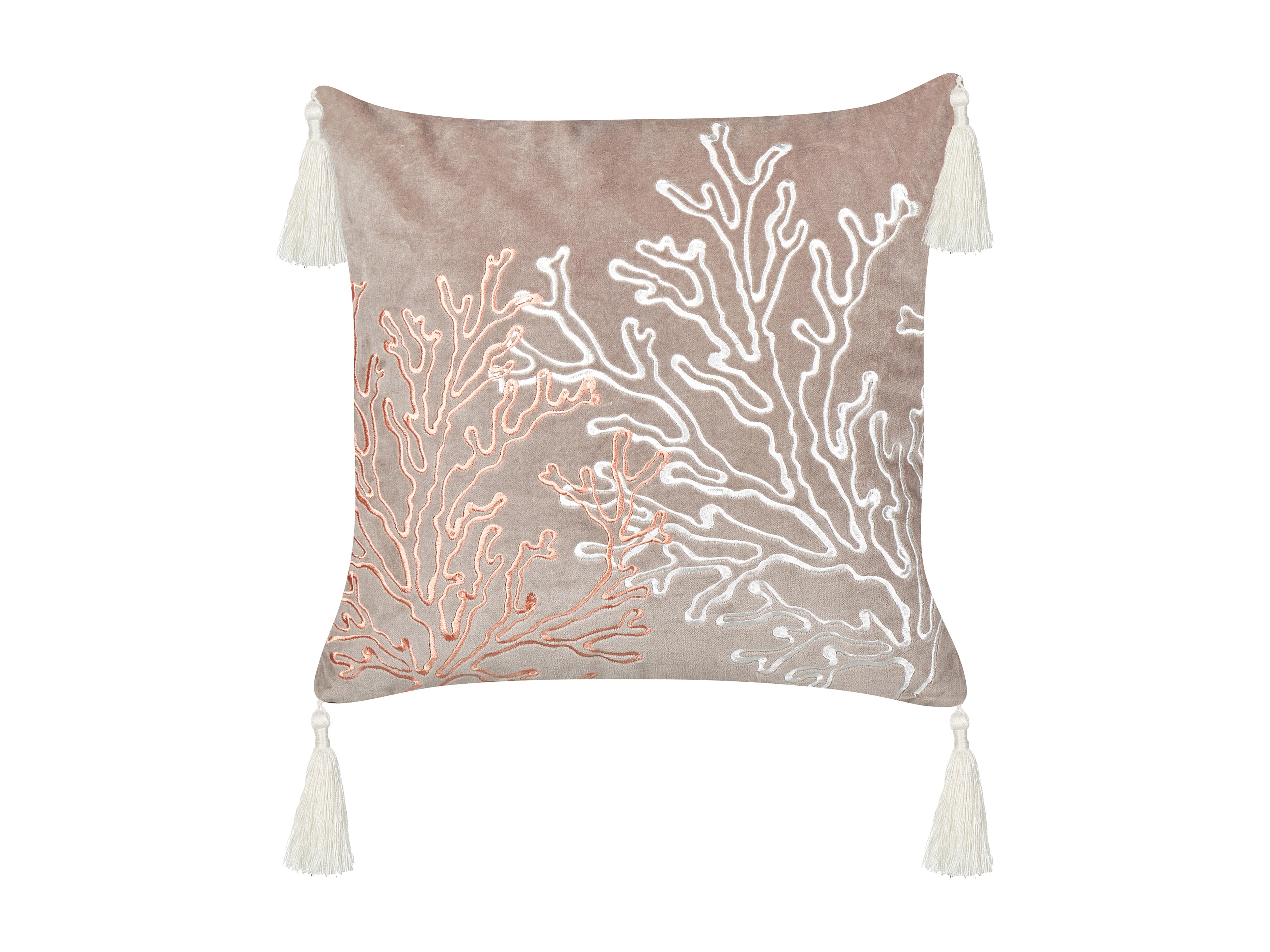 Coussin MAZZAELLA Velours 45 x 45 cm Taupe Motif de plante