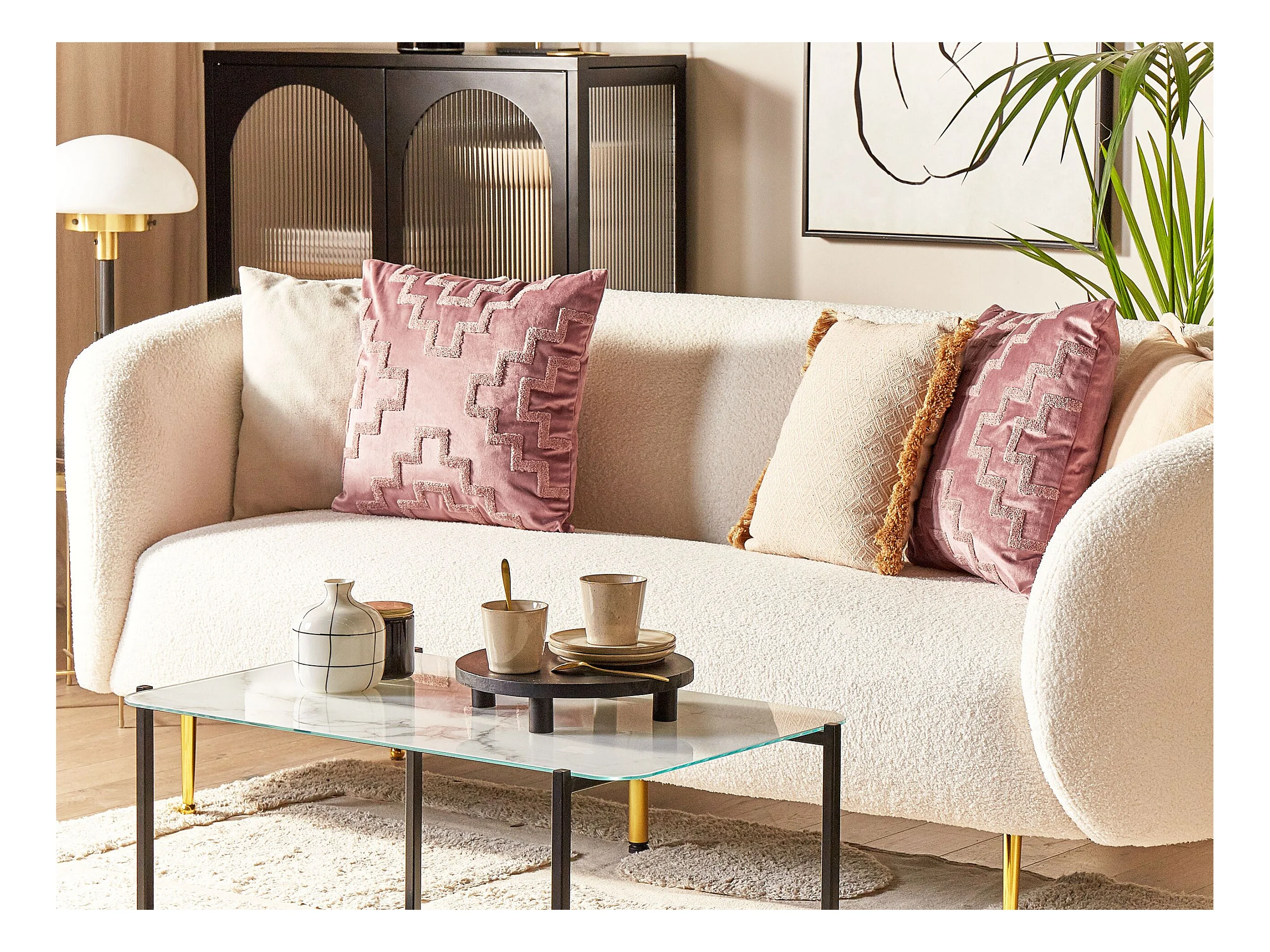 Lot de 2 coussins décoratifs SERGIPE Velours 45 x 45 cm Rose Motif géométrique