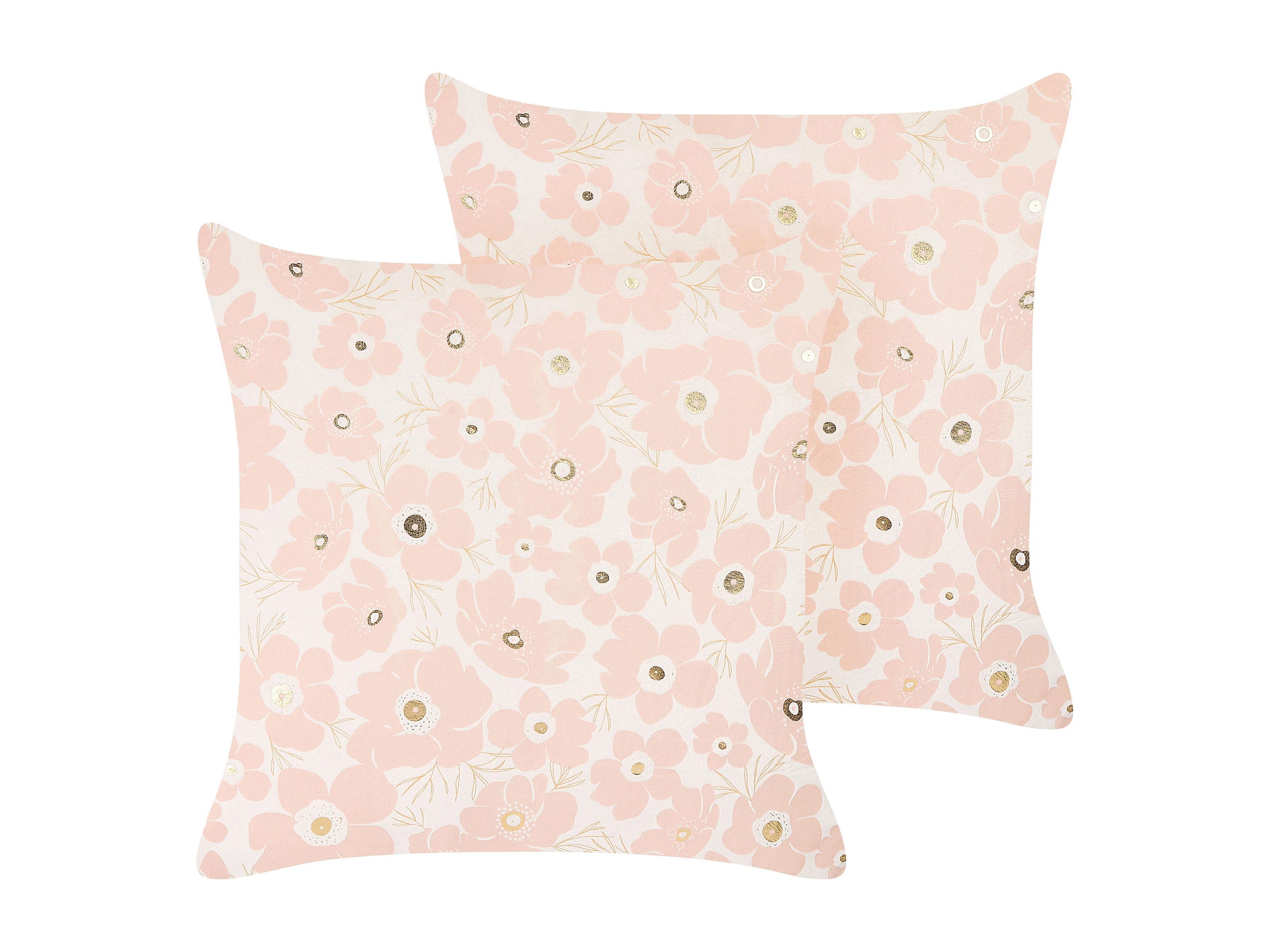 Lot de 2 coussins décoratifs ANEMONES Velours 45 x 45 cm Rose pastel Motif floral