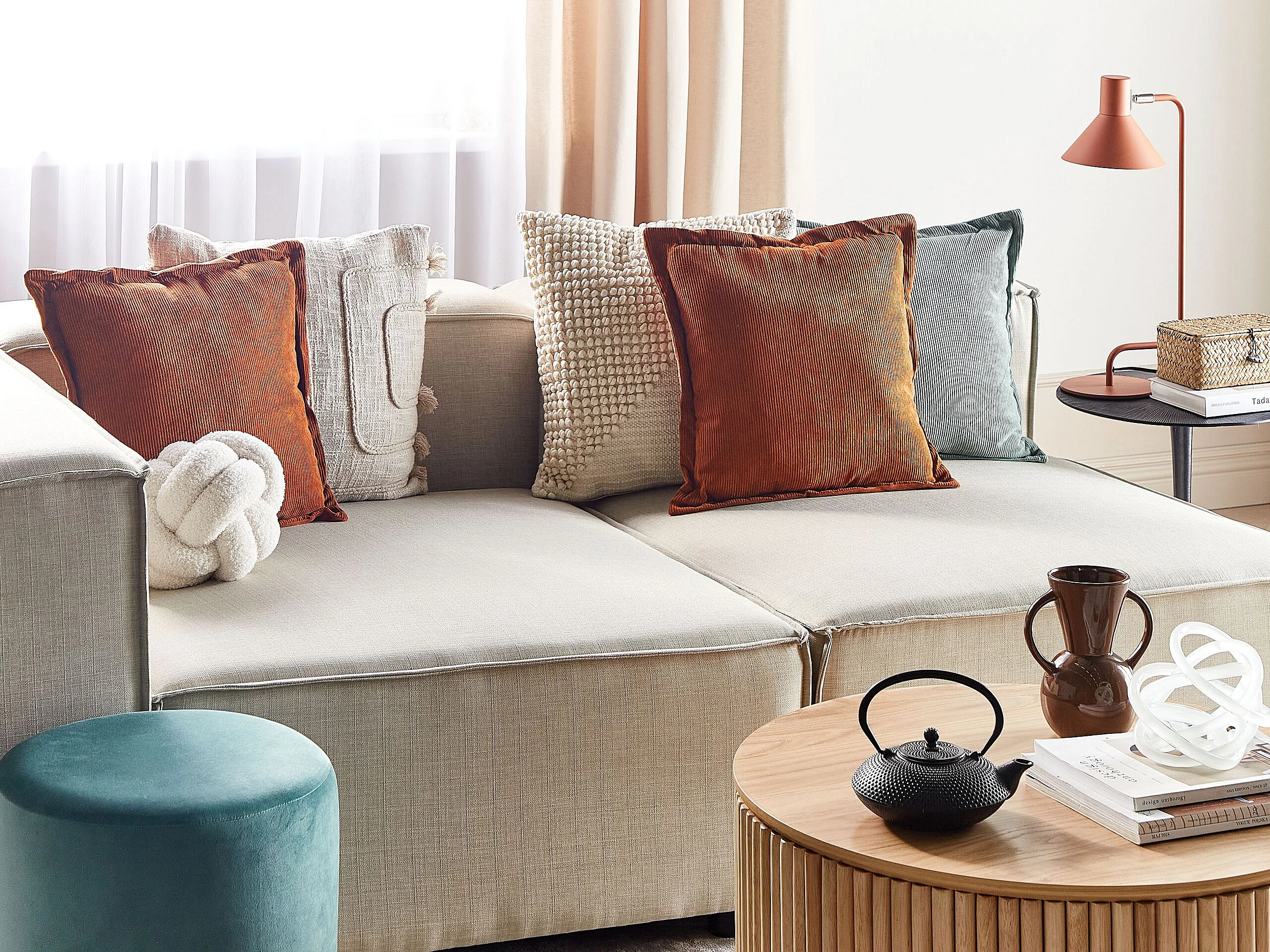 Lot de 2 coussins décoratifs ZINNIA Velours côtelé 43 x 43 cm Marron doré Unicolore