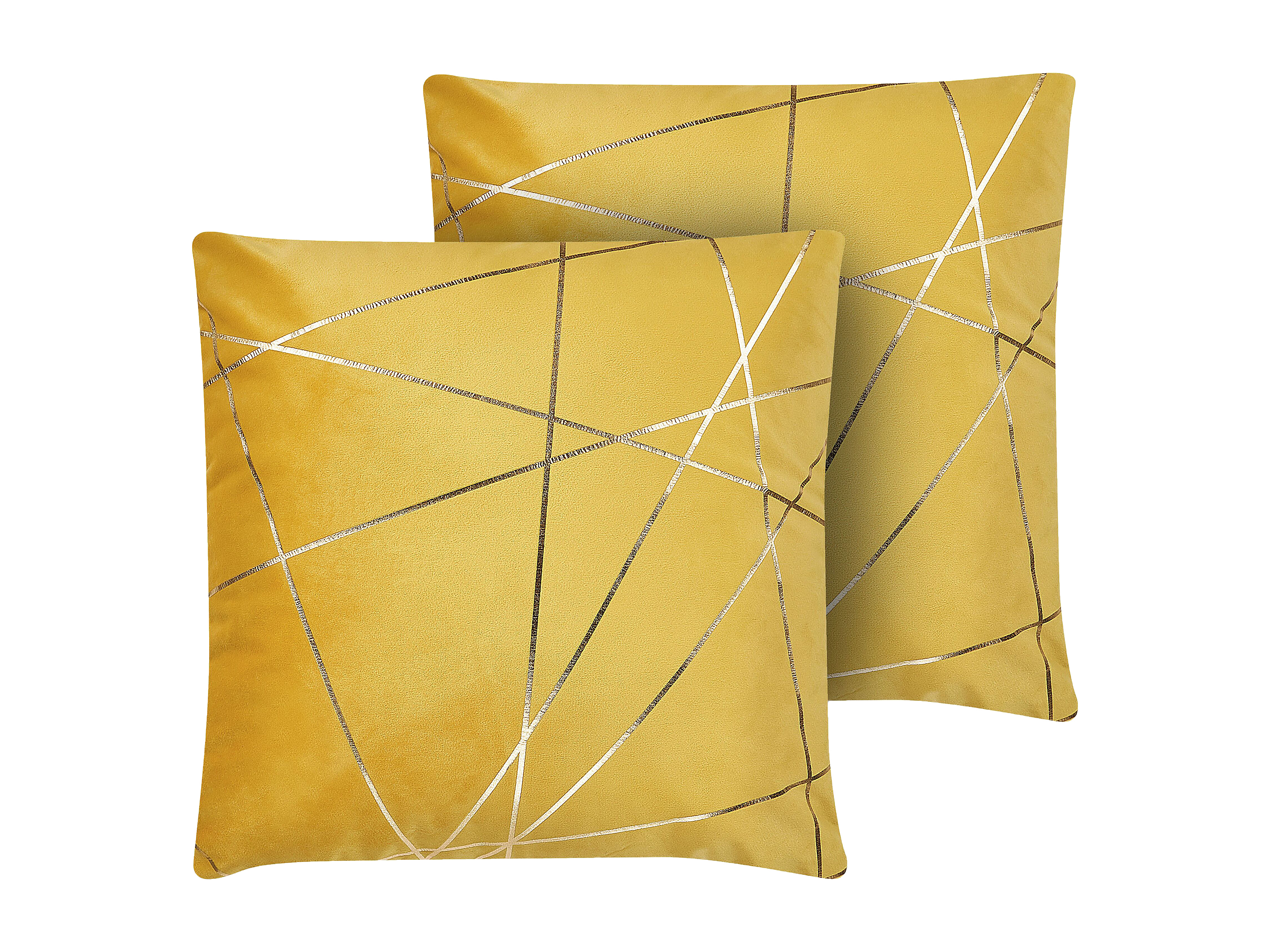 Lot de 2 coussins décoratifs PINUS Velours 45 x 45 cm Jaune Motif géométrique