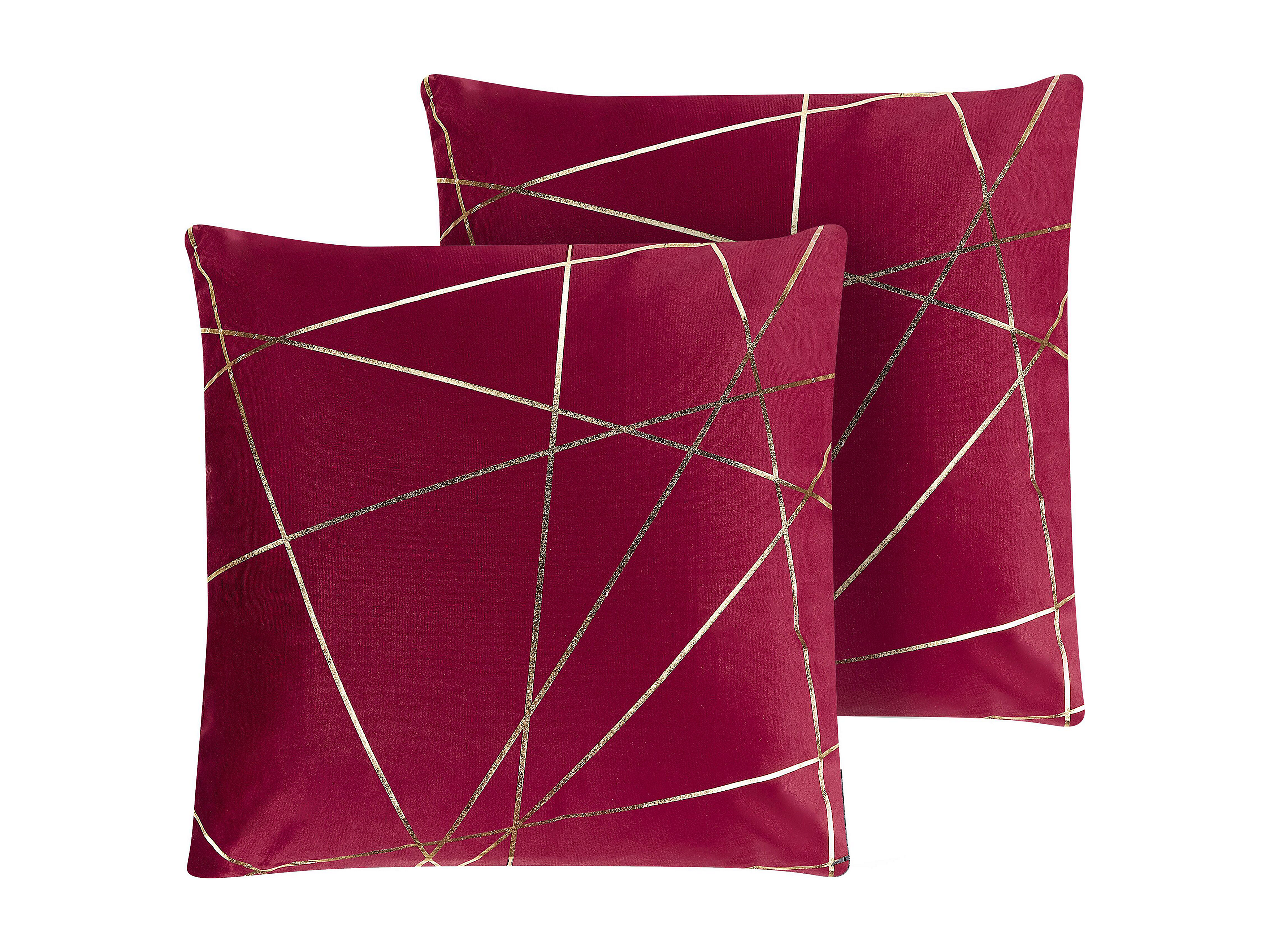 Lot de 2 coussins décoratifs PINUS Velours 45 x 45 cm Rouge Motif géométrique