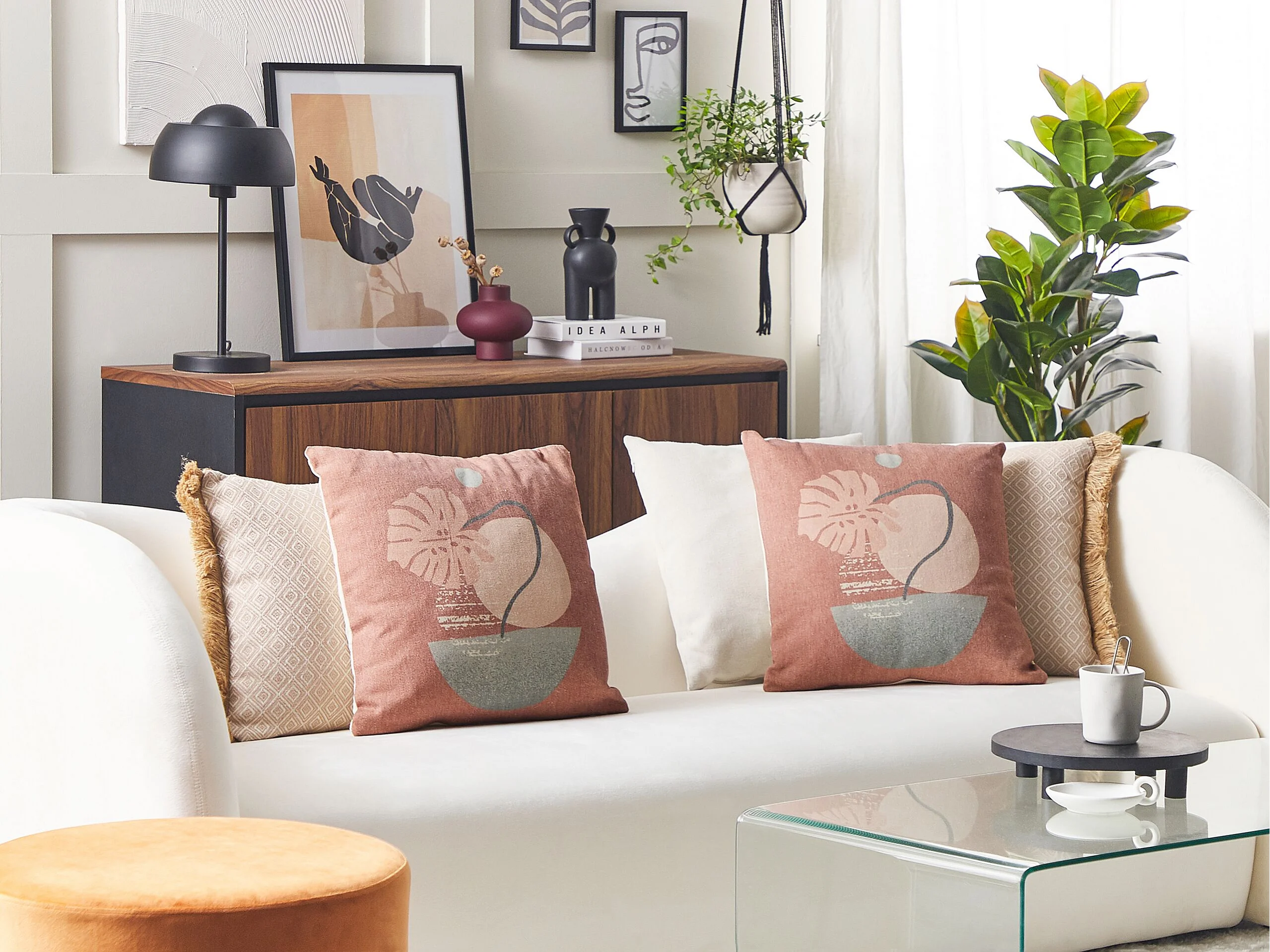 Lot de 2 coussins décoratifs AGERATUM 45 x 45 cm Rouge clair Motif abstrait