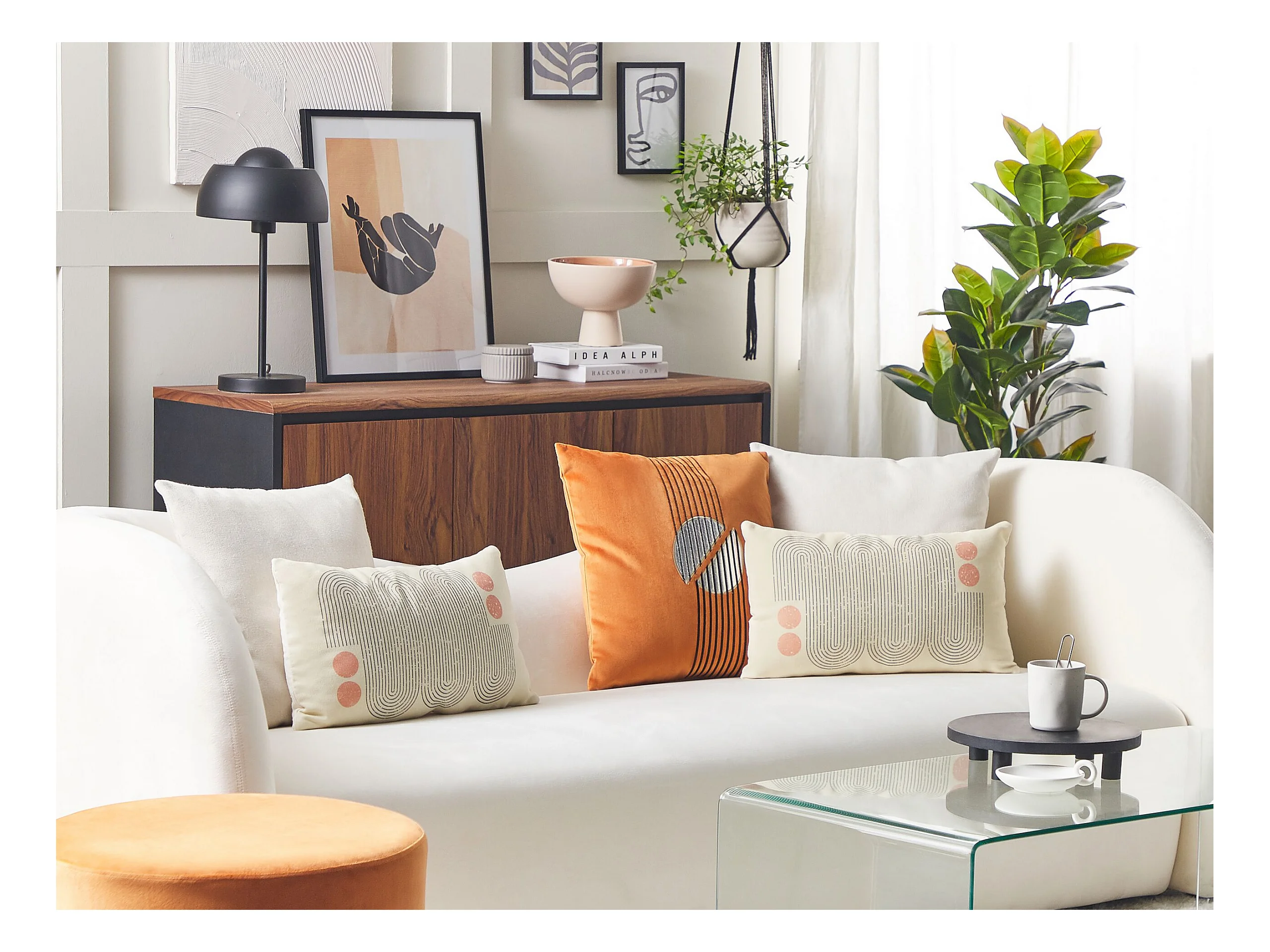 Lot de 2 coussins décoratifs MOONFLOWER 45 x 45 cm Blanc Motif géométrique