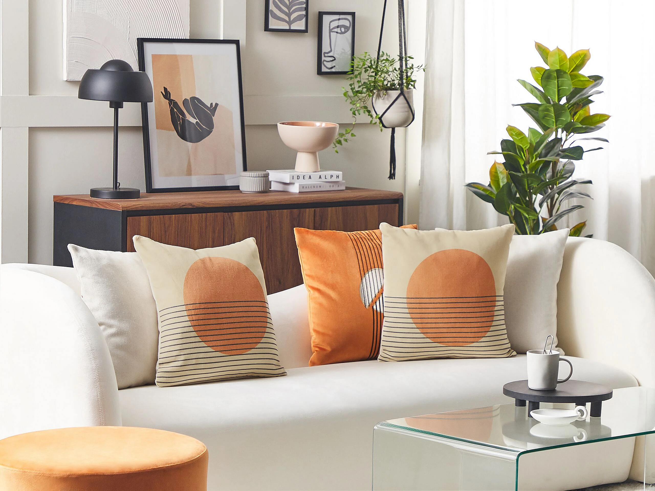 Lot de 2 coussins décoratifs MOONFLOWER 45 x 45 cm Blanc Motif géométrique