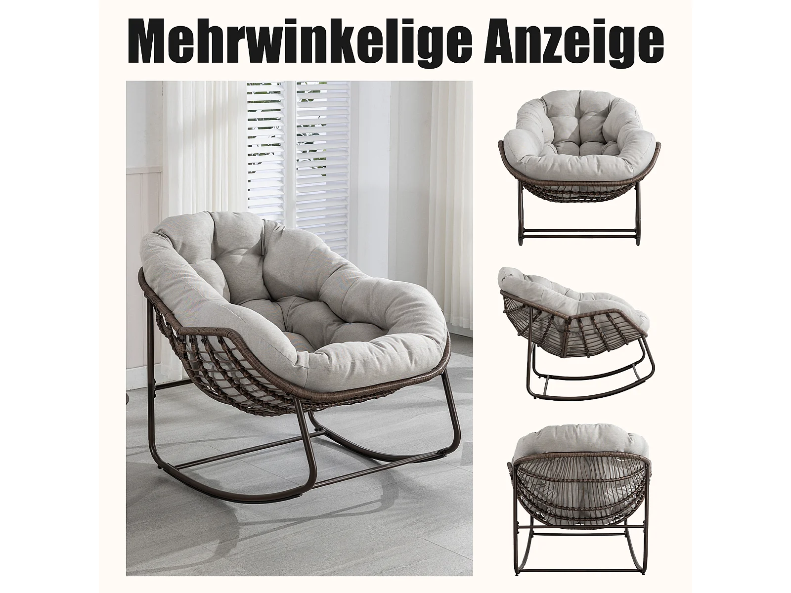 Fauteuil à Bascule - Chaise à Bascule Surdimensionnée - avec Assise Capitonnée, Gris