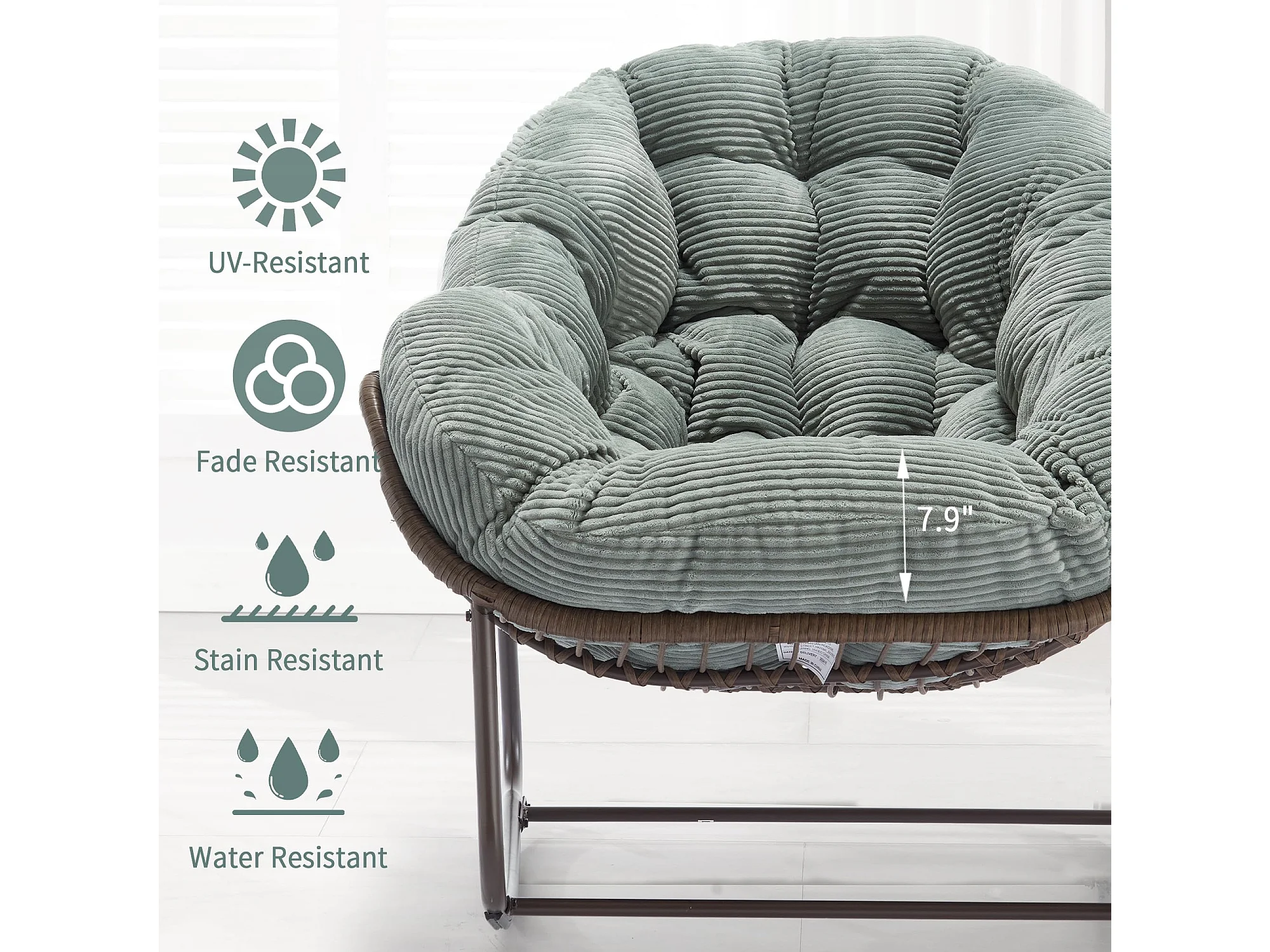 Fauteuil à Bascule en Rotin Naturel - Forme Œuf et Coussin Vert - Confortable pour Salon, Véranda ou Chambre