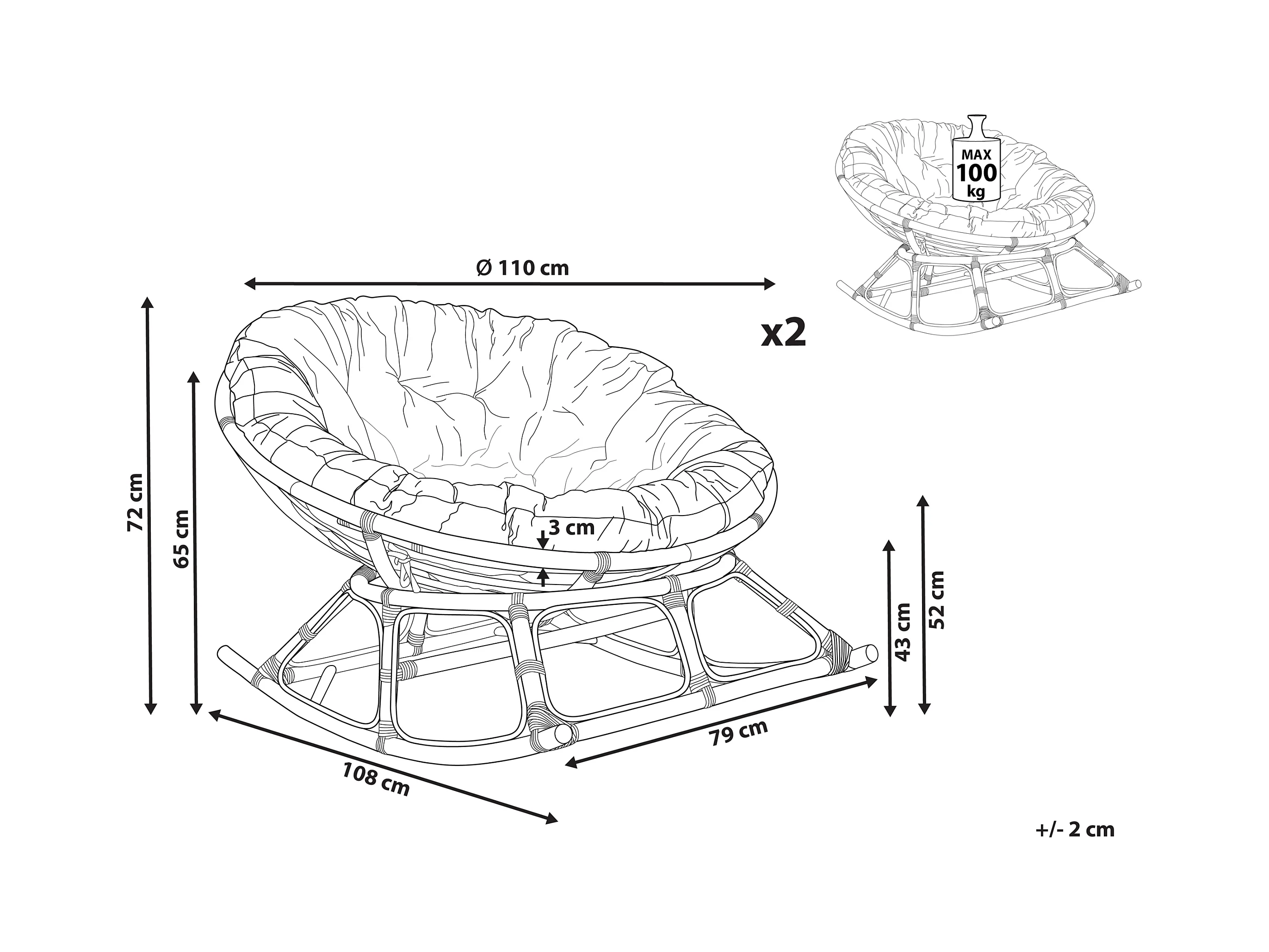 Lot de 2 fauteuils à bascule ORVIETO Rotin Naturel