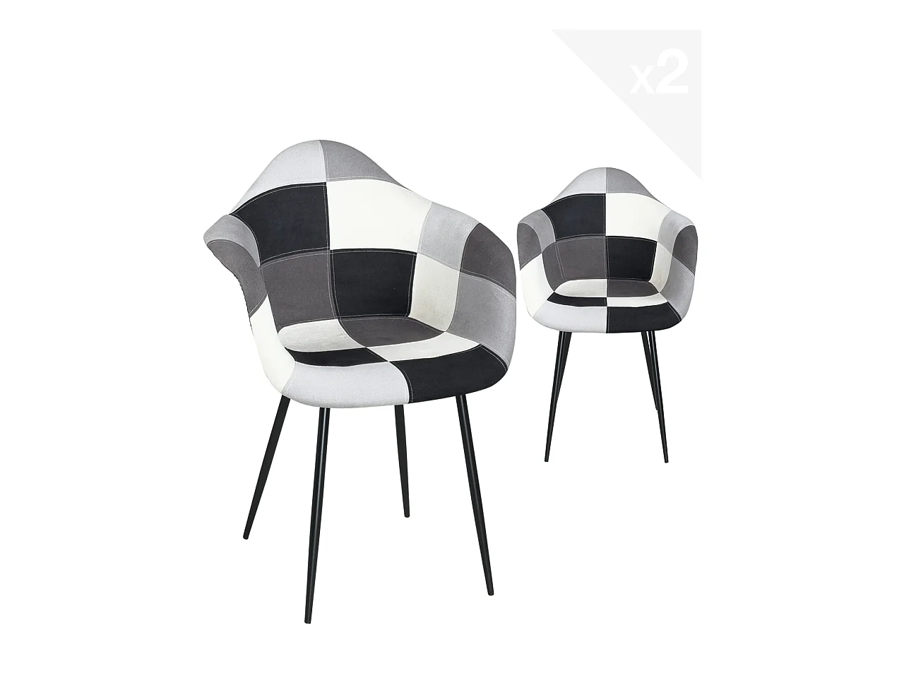 Lot de 2 Fauteuils accoudoirs Patchwork pieds métal NOVO (Gris)