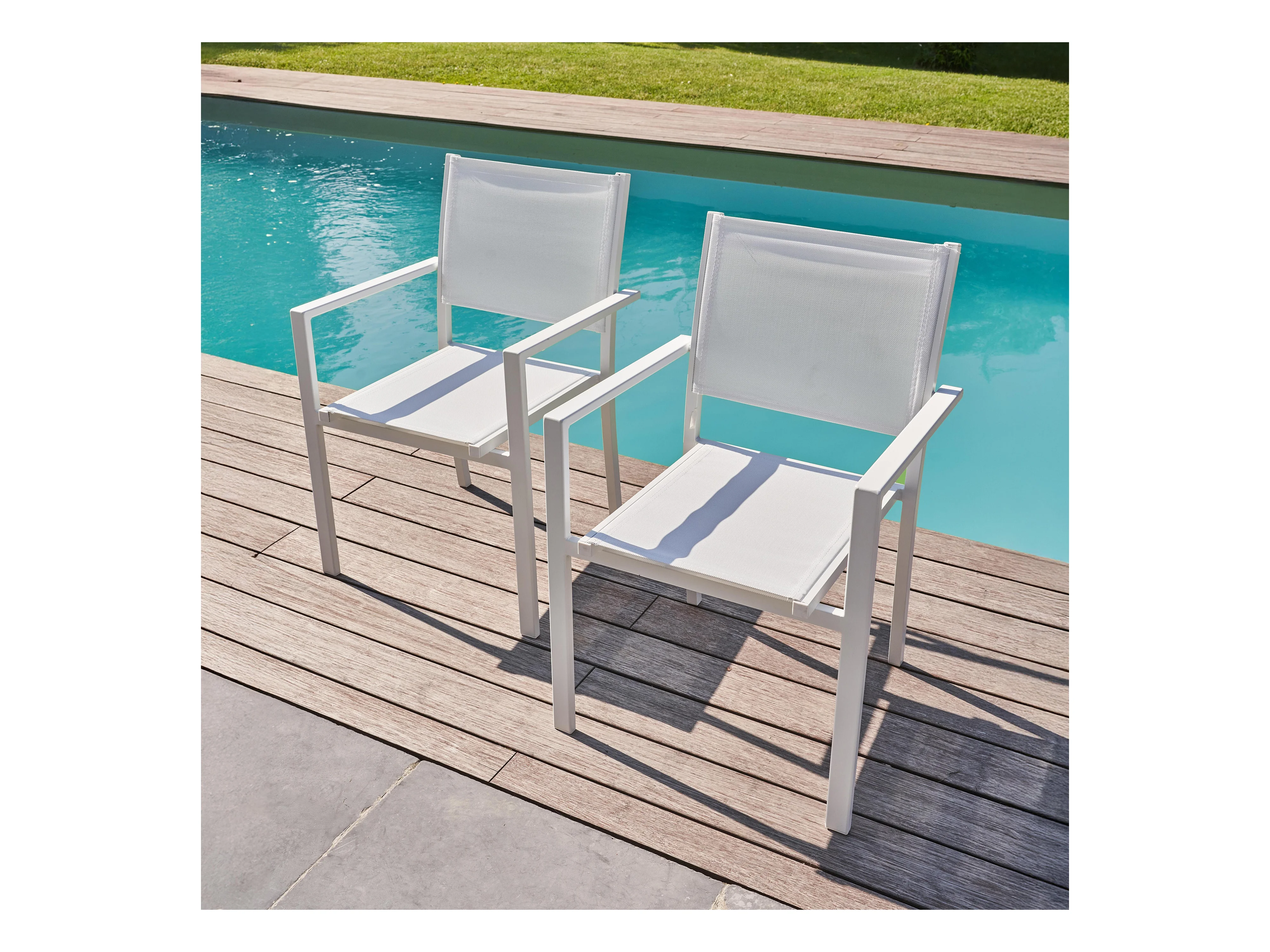 Lot de 2 fauteuils de jardin aluminium et textilène blanc