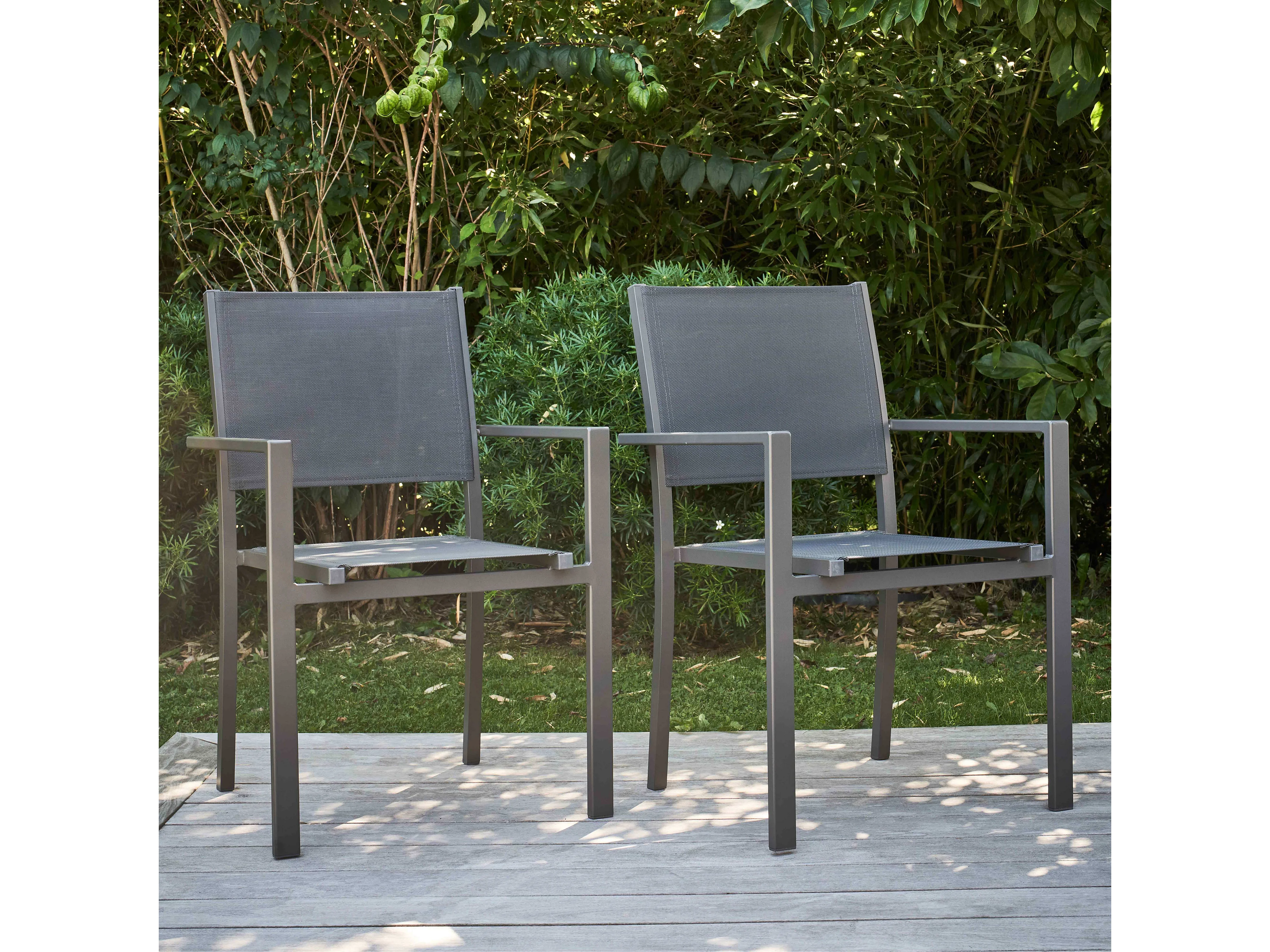 Lot de 2 fauteuils de jardin aluminium et textilène gris