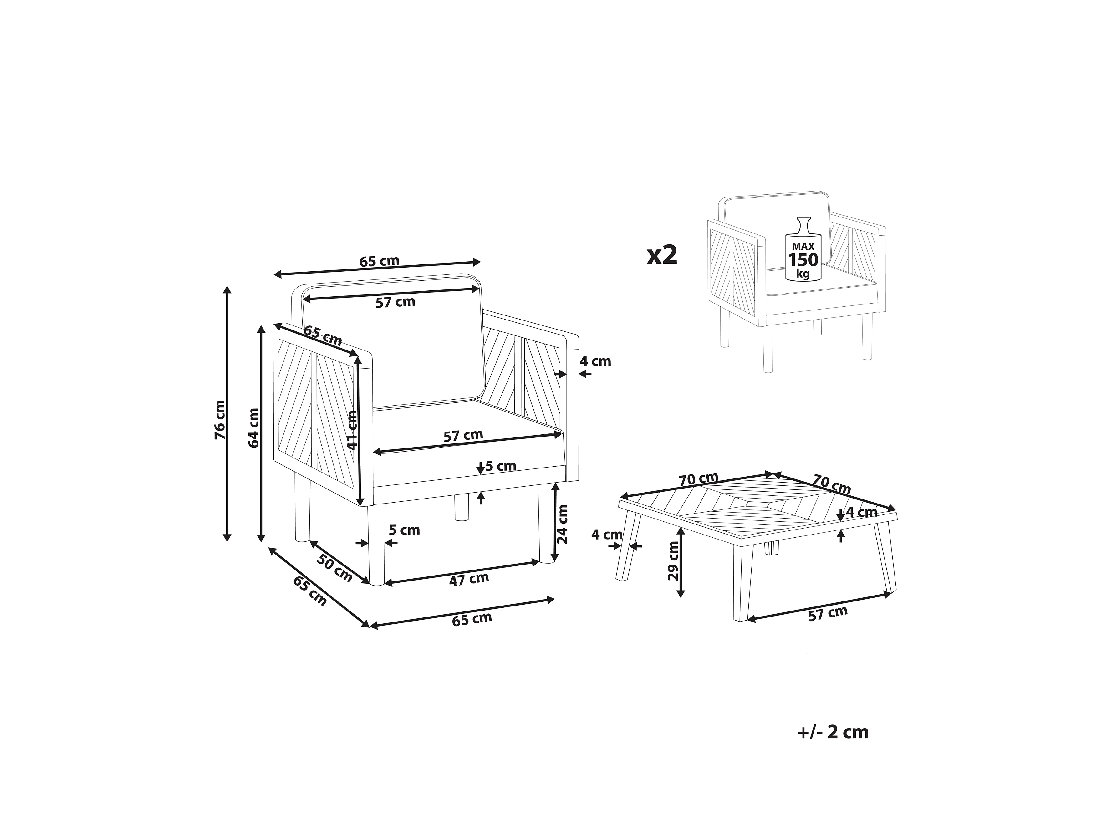 Ensemble Table et chaise de jardin 2 places