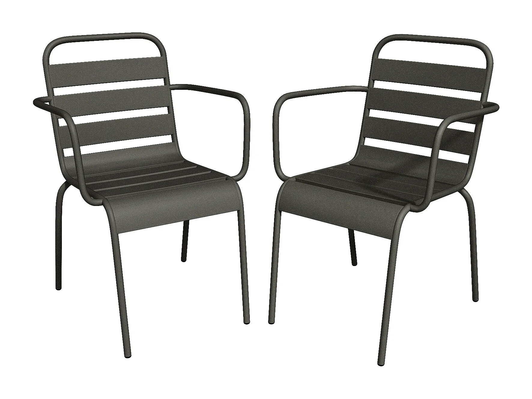 Lot de 2 fauteuils de jardin empilables en métal - Gris anthracite - MIRMANDE de MYLIA