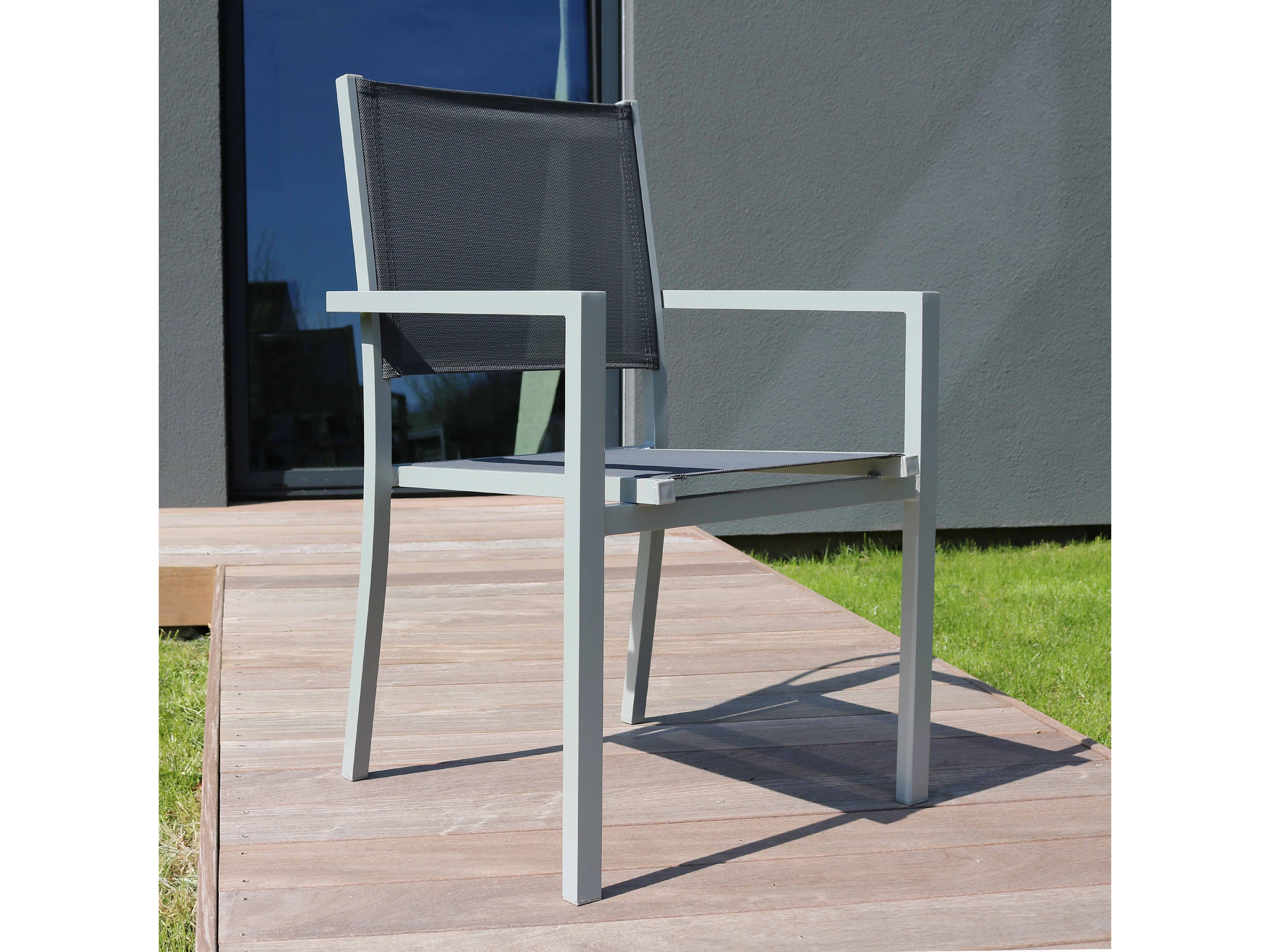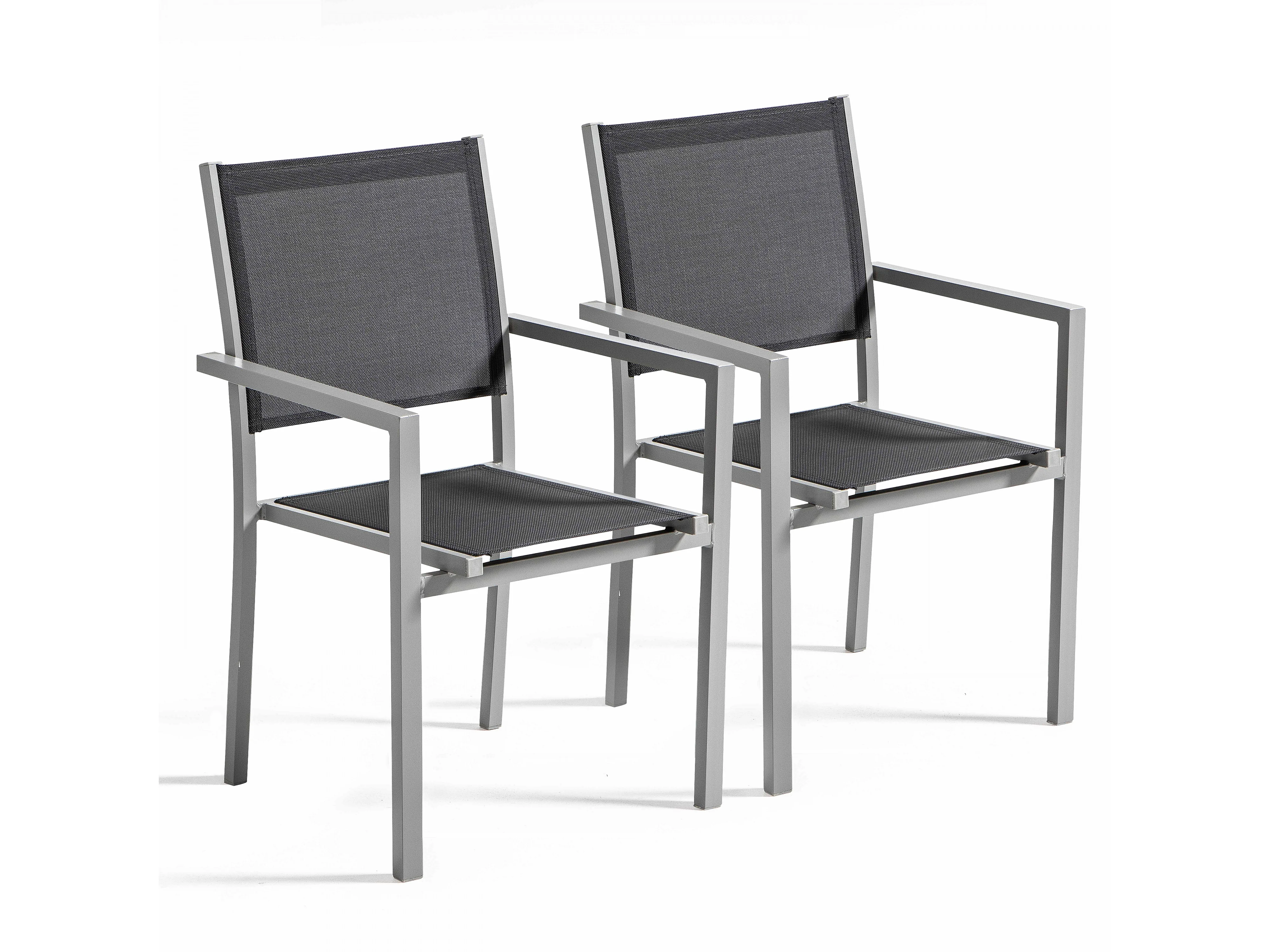 Lot de 2 fauteuils de jardin aluminium et textilène gris