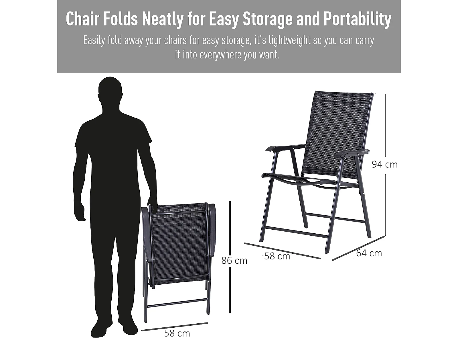 Lot de 2 fauteuils pliants avec accoudoirs, métal, noir (58x64x94cm)