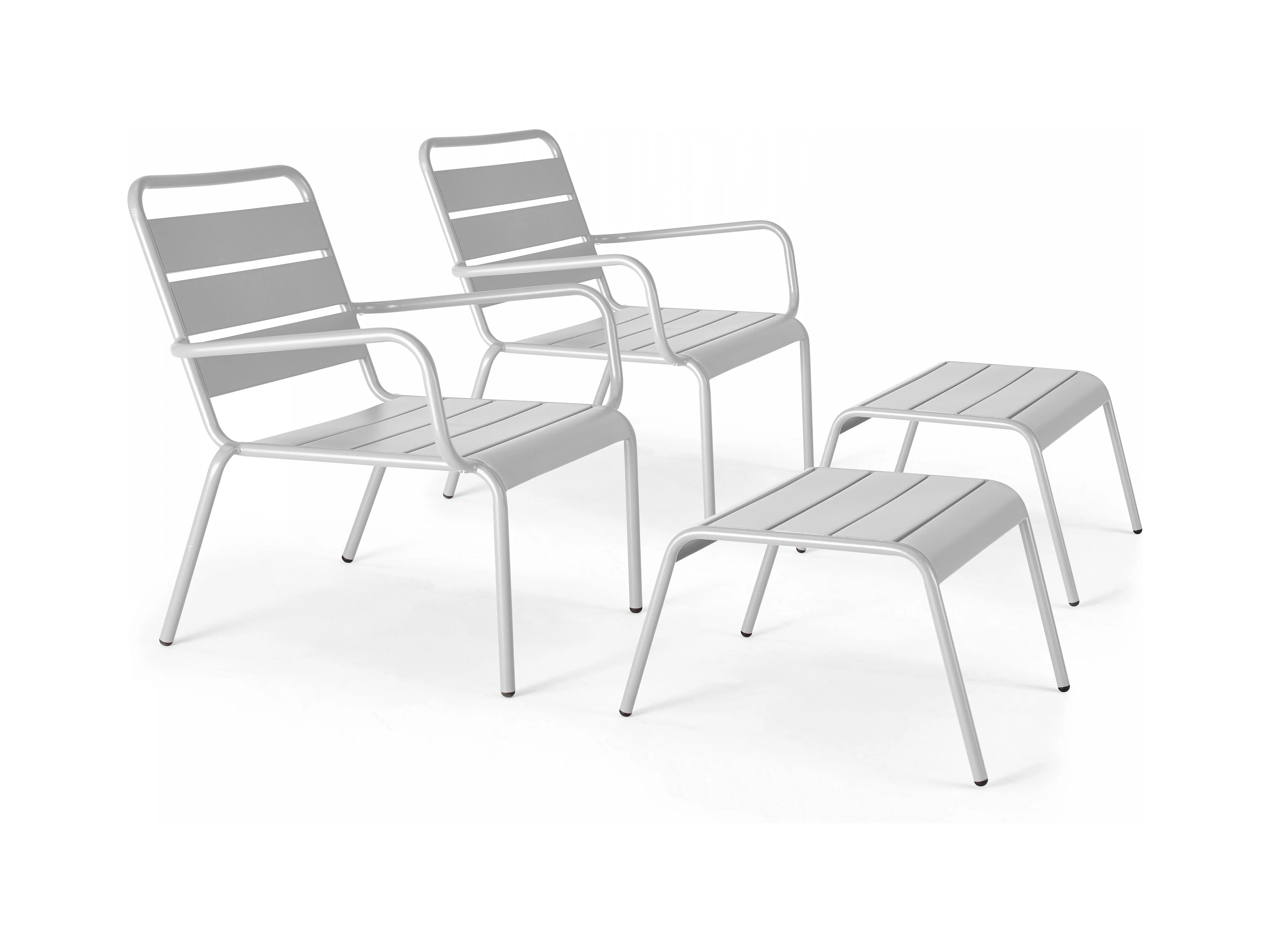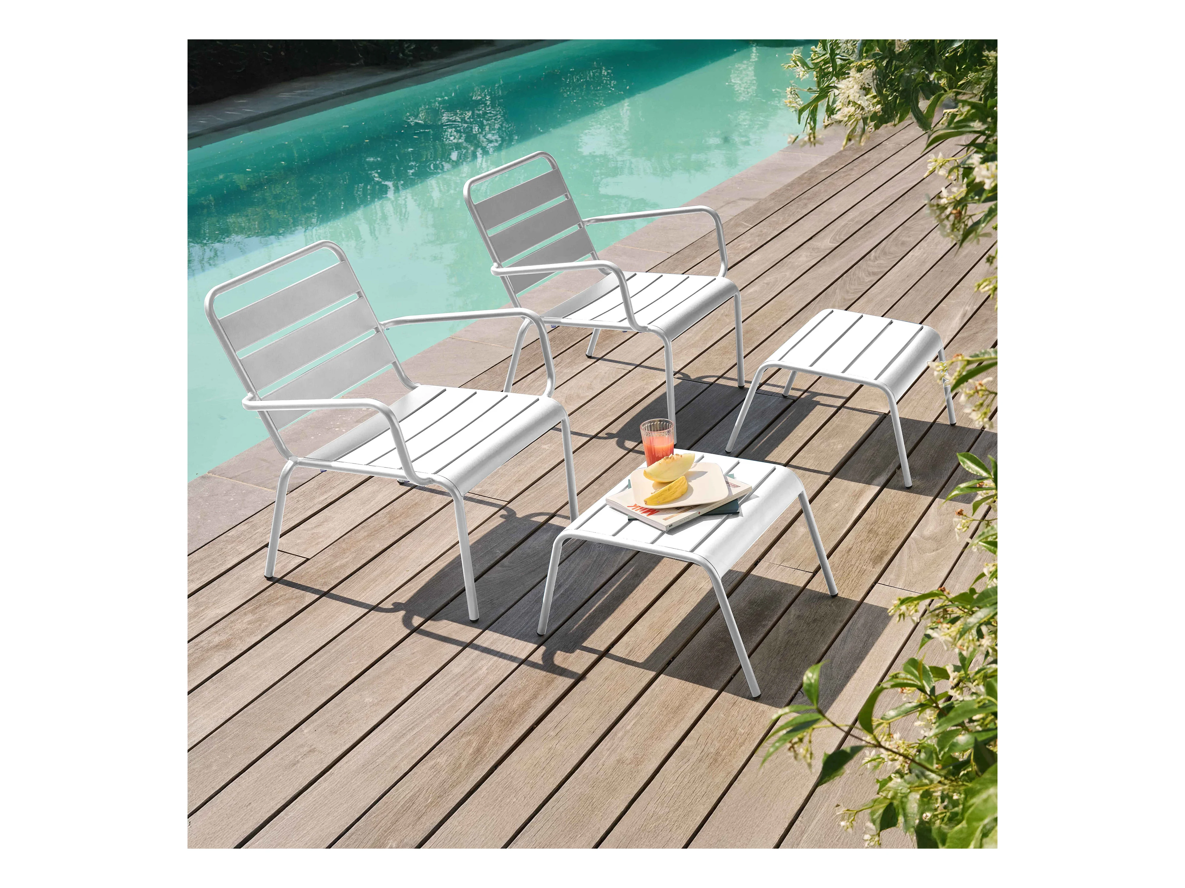 Lot de 2 fauteuils relax avec repose-pieds en métal blanc - Palavas
