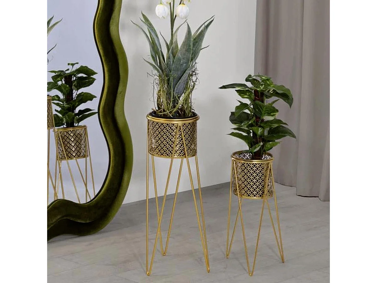 Lot de 2 Cache-Pots sur Pied "Mara" 46cm Or