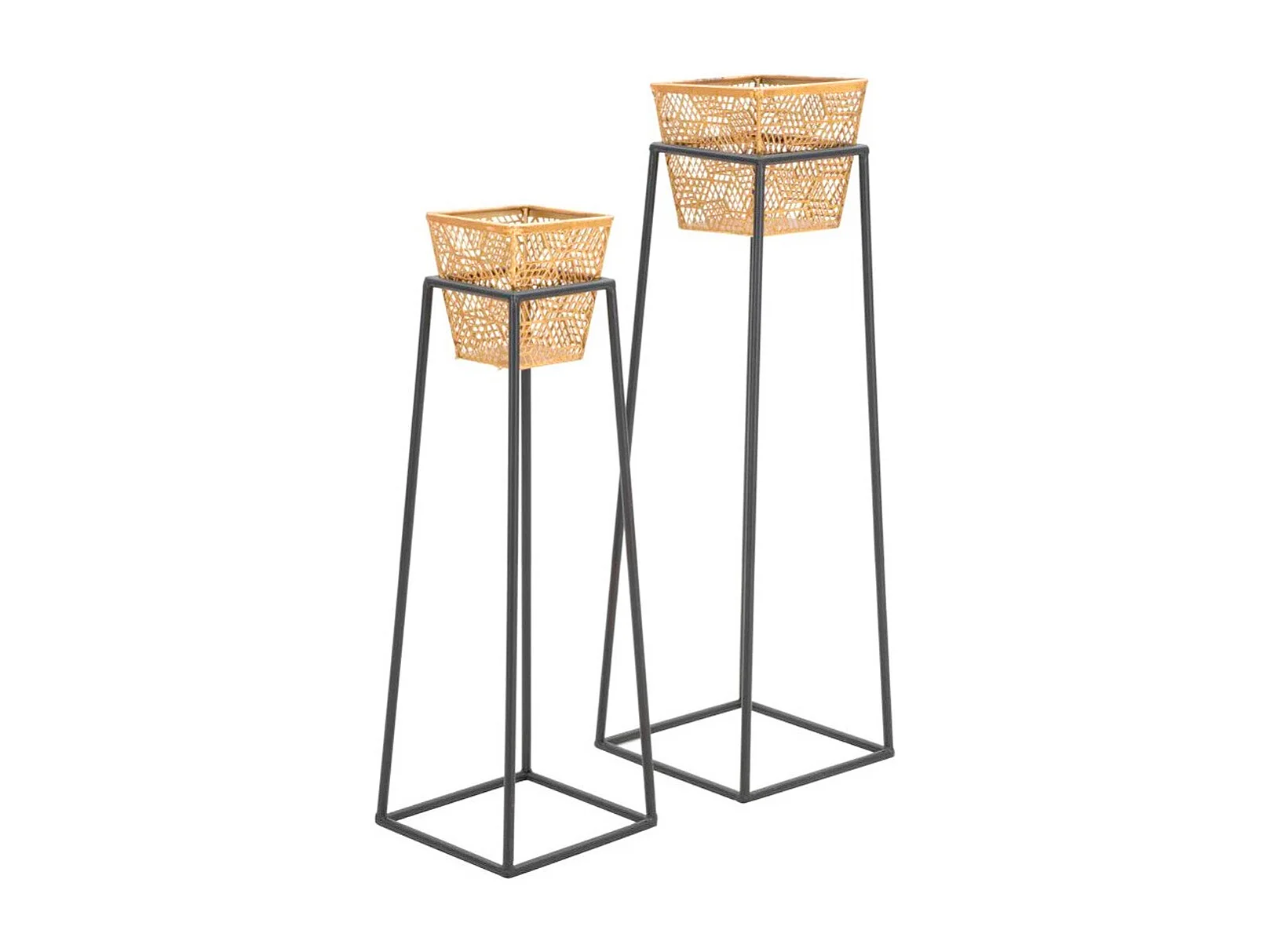 Lot de 2 Cache-Pots sur Pied "Wilma" 70cm Noir & Or