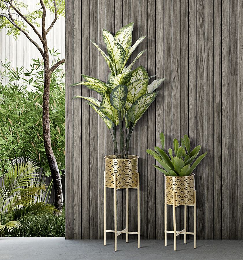 Lot de 2 Cache Pots MF398, Or, 21x21x52 cm, Epikasa