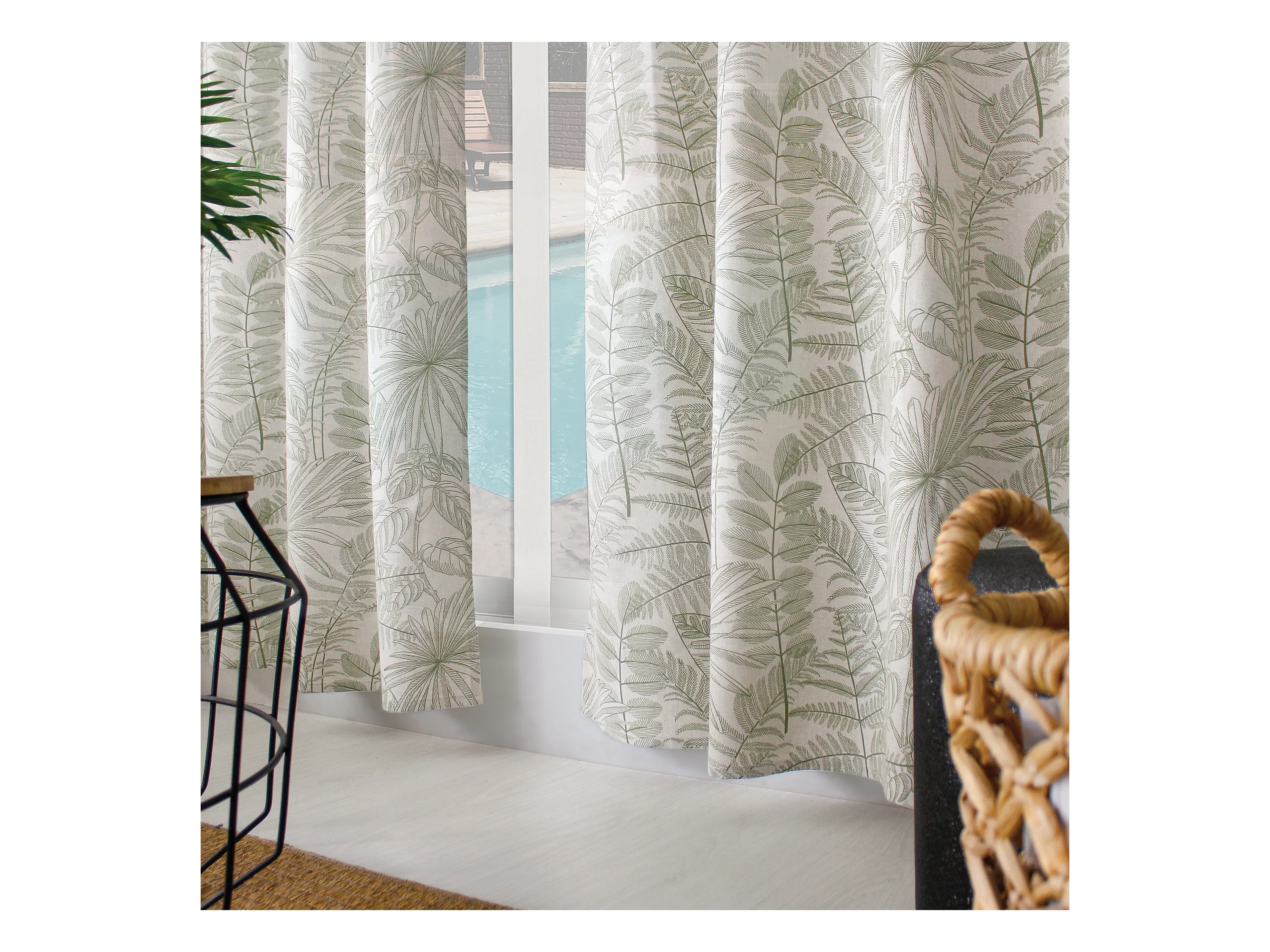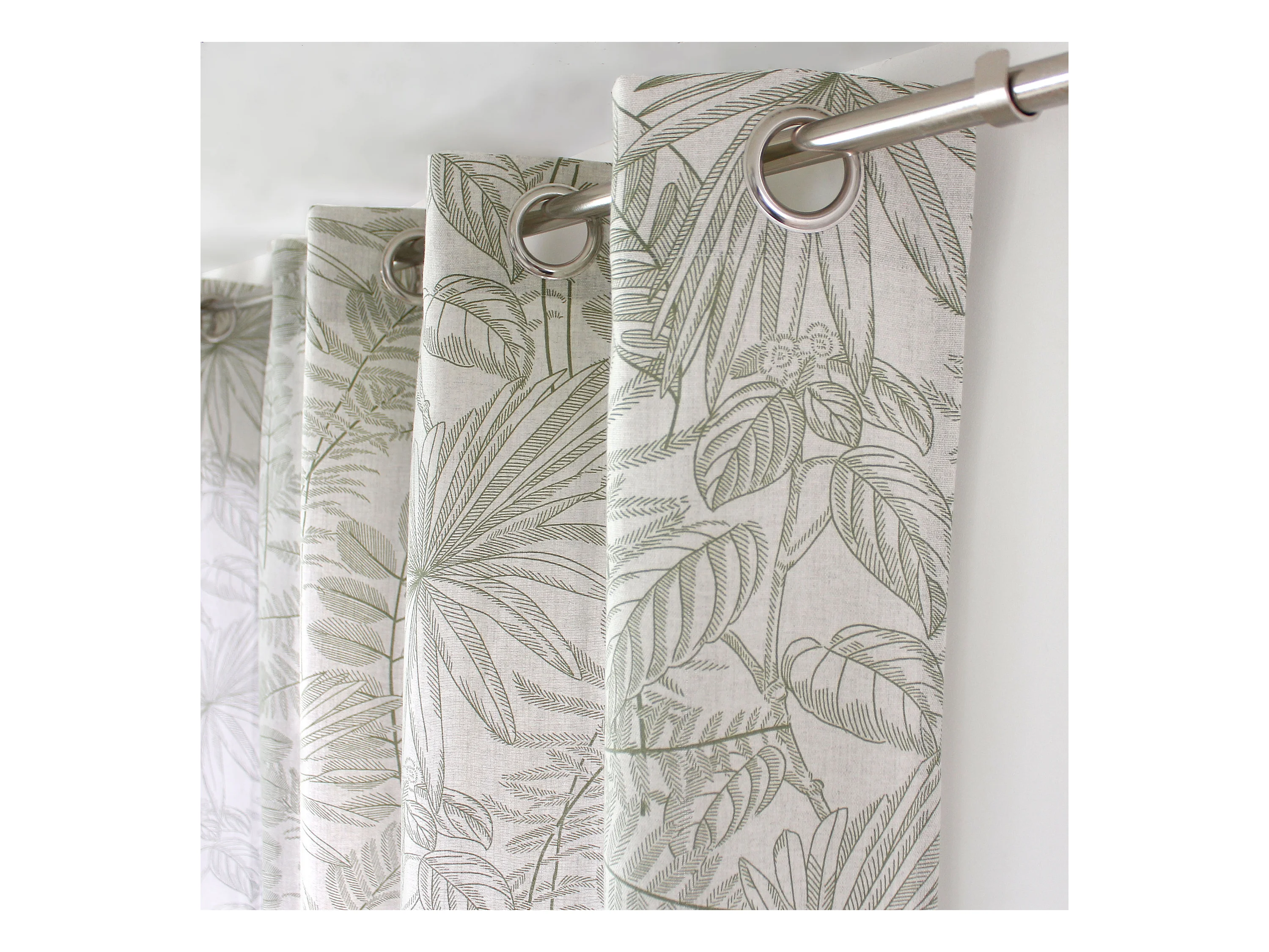 Lot de 2 Rideaux à Œillets, 140x240cm, Ecru et Olive, Motif Jungle Tropical, Collection Mambo