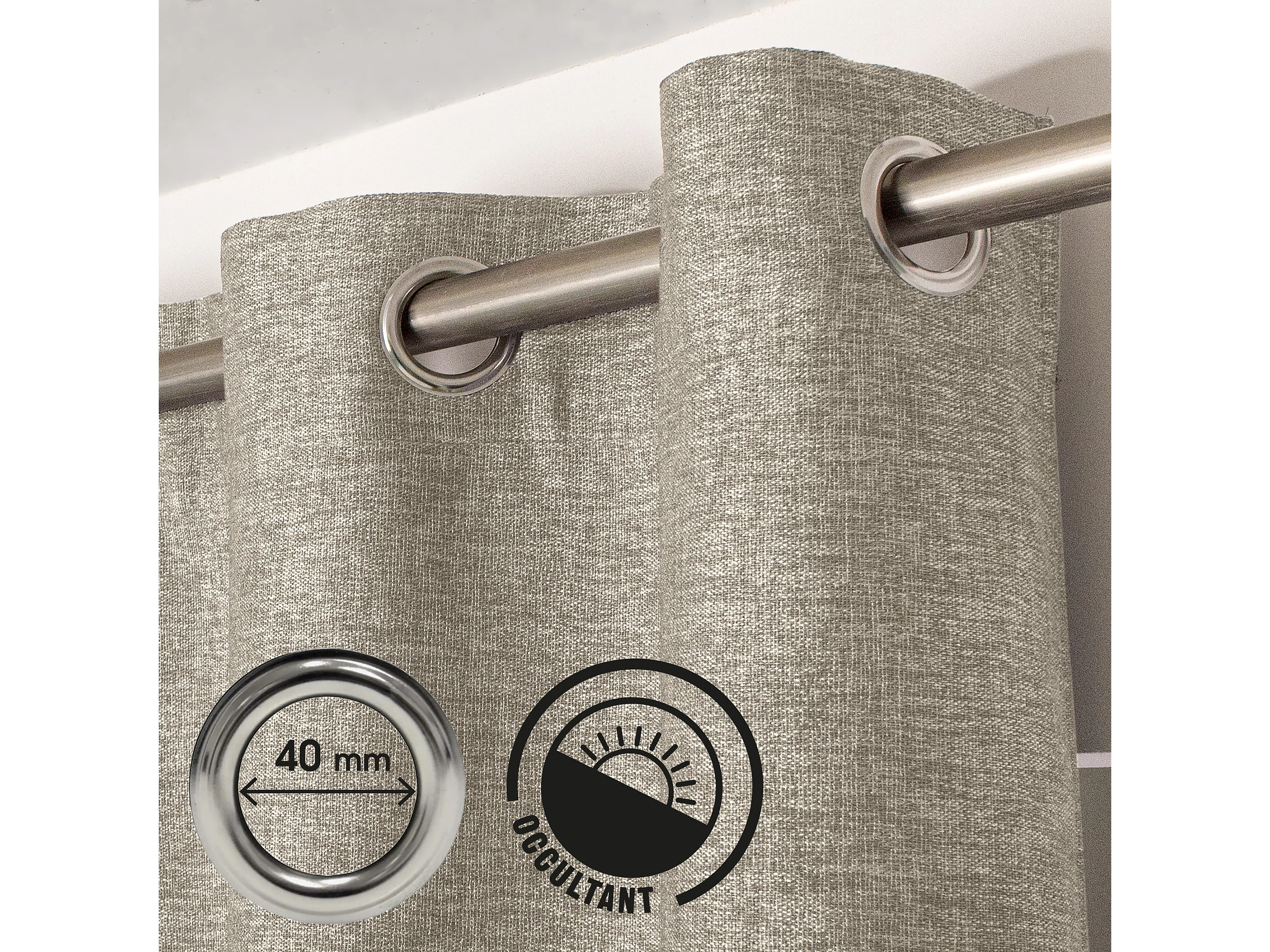 Lot de 2 rideaux occultant avec oeillets, gris, 140x180cm, 100% polyester, collection Réglisse