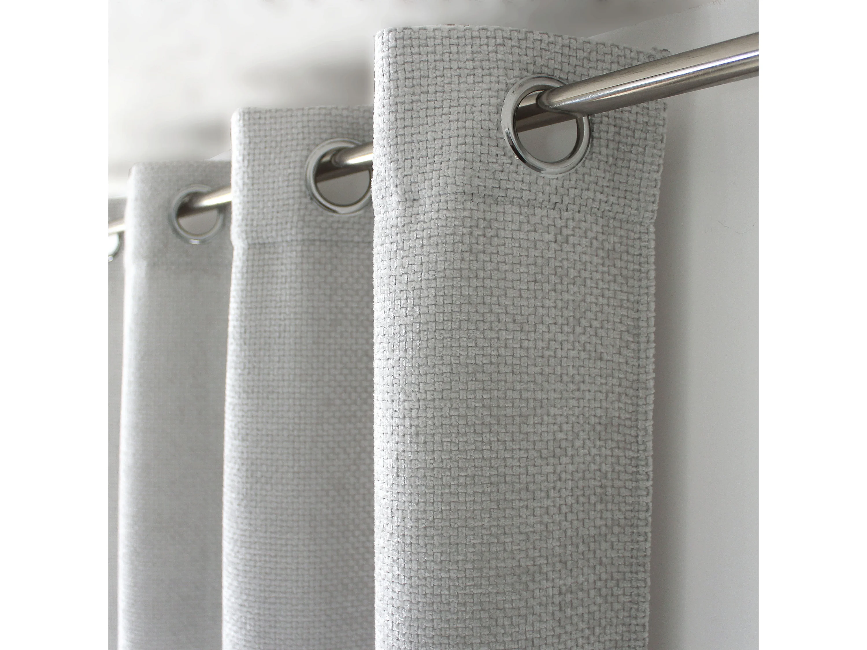 Lot de 2 Rideaux Velours Chenillé, à Œillets, Gris Clair, 100% polyester, Collection Kamala
