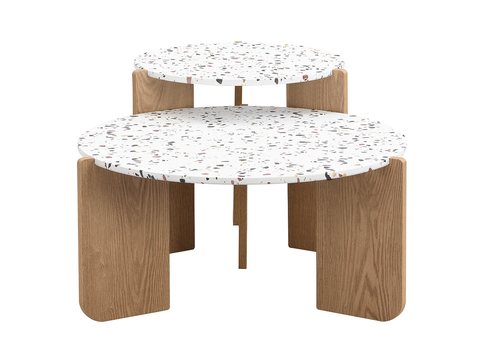 Ensemble de 2 tables basses Curve Nuovo Travertin - Mangue massif couleur sable