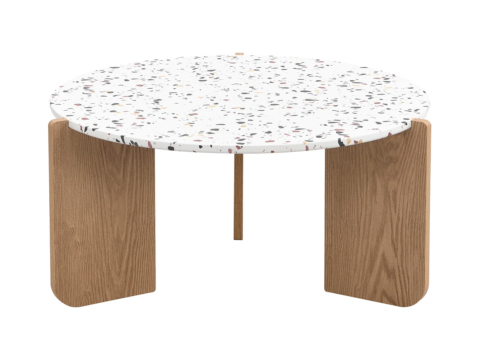 Table basse ronde Wave - Mangue massif couleur sable - Lot de 2