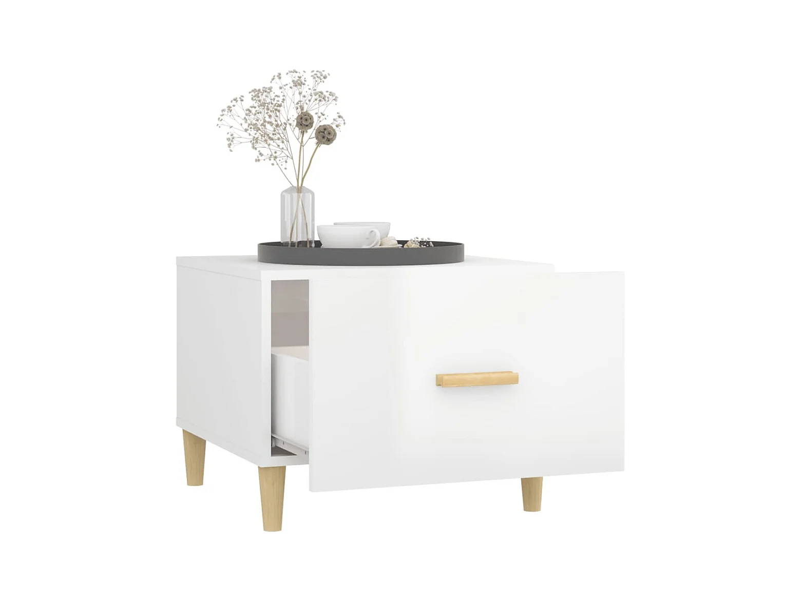 Table basse blanc brillant 50x50x40 cm bois d'ingénierie OFR37069 BonneVie Meuble