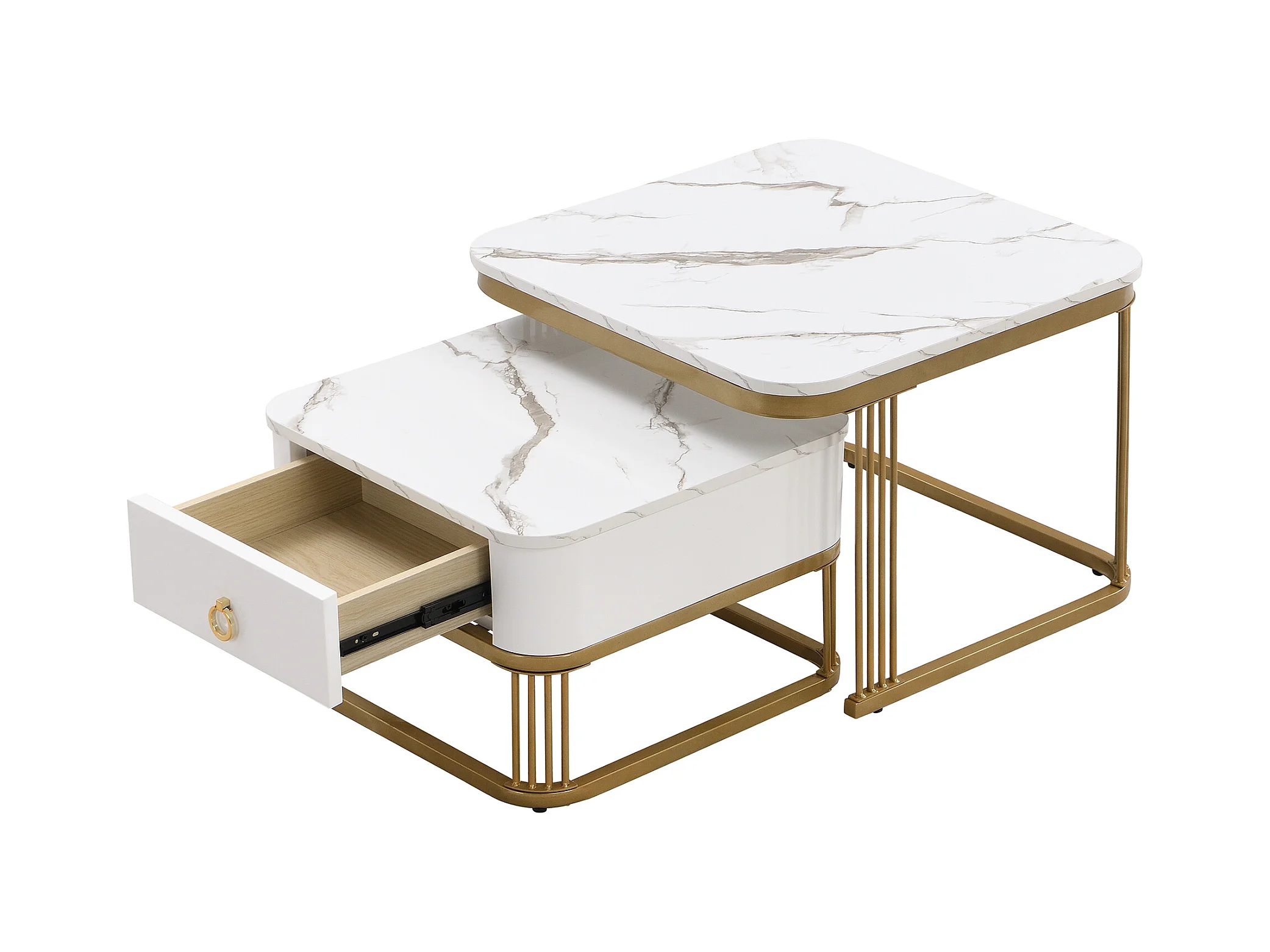 Lot de 2 tables basses 60x60x45 cm avec de grandes et petites tables et tiroirs Matériau MDF en blanc pour salon