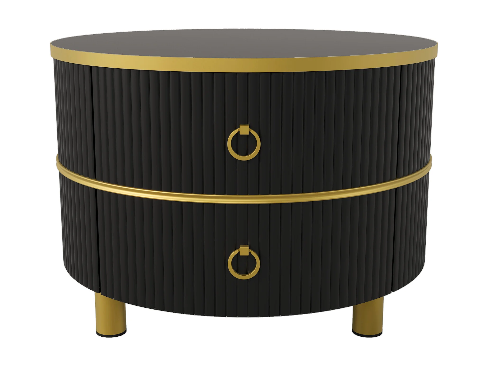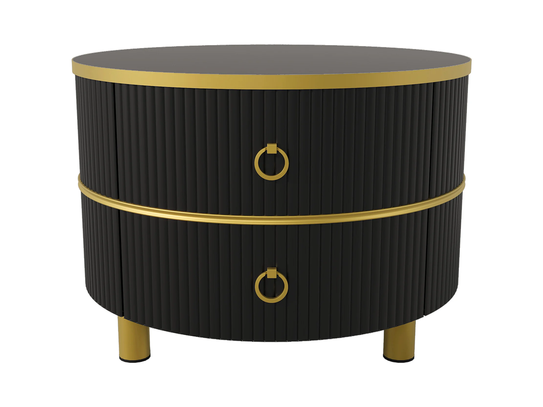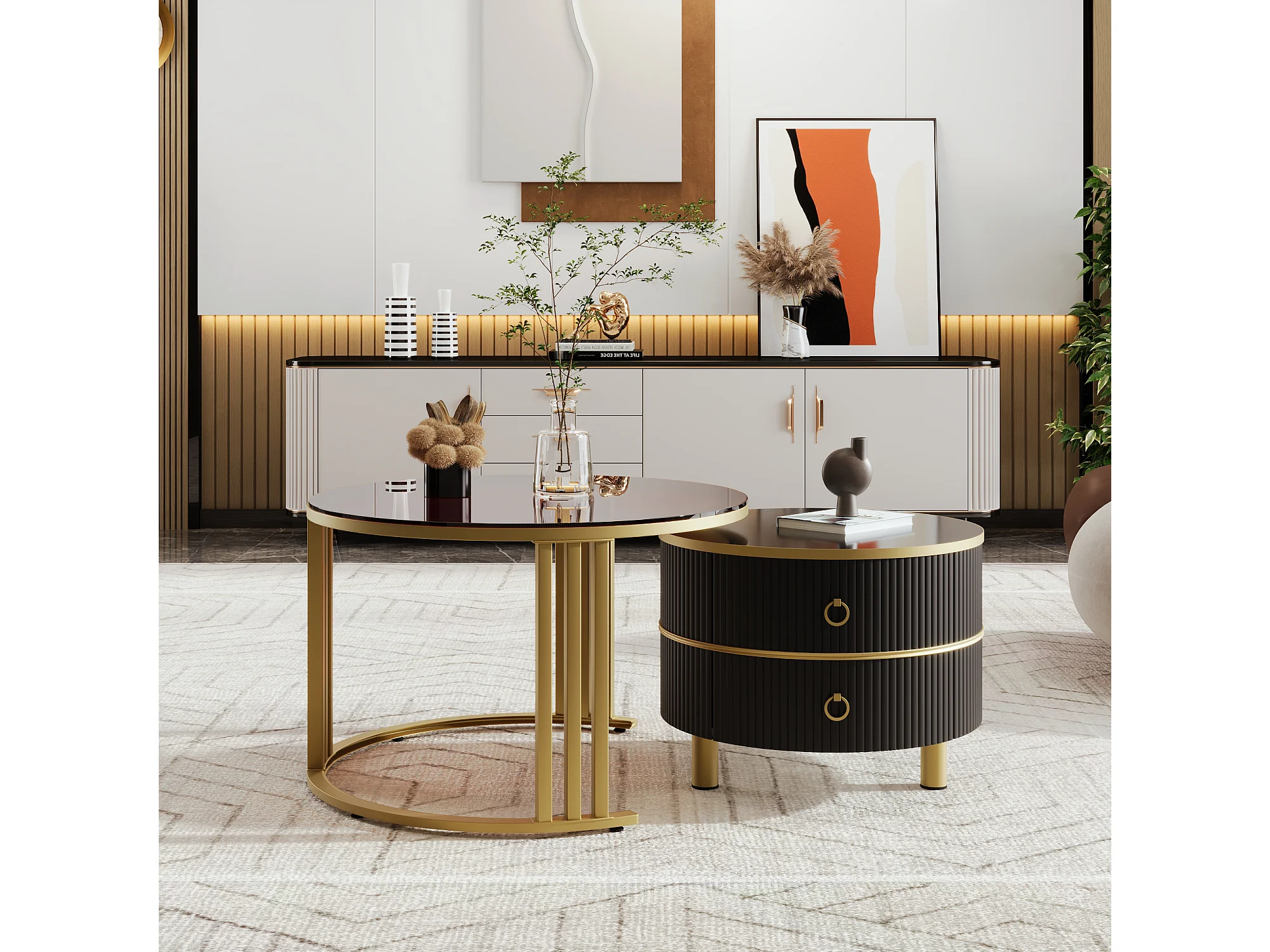 Lot de 2 tables basses rondes 70x70x45 cm et 50x50x40 cm, 2 tiroirs, gigogne, MDF et verre, noir