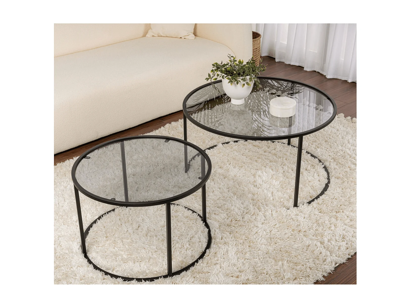 Lot de 2 tables basses gigognes rondes avec plateau en verre D80 cm - AURUM