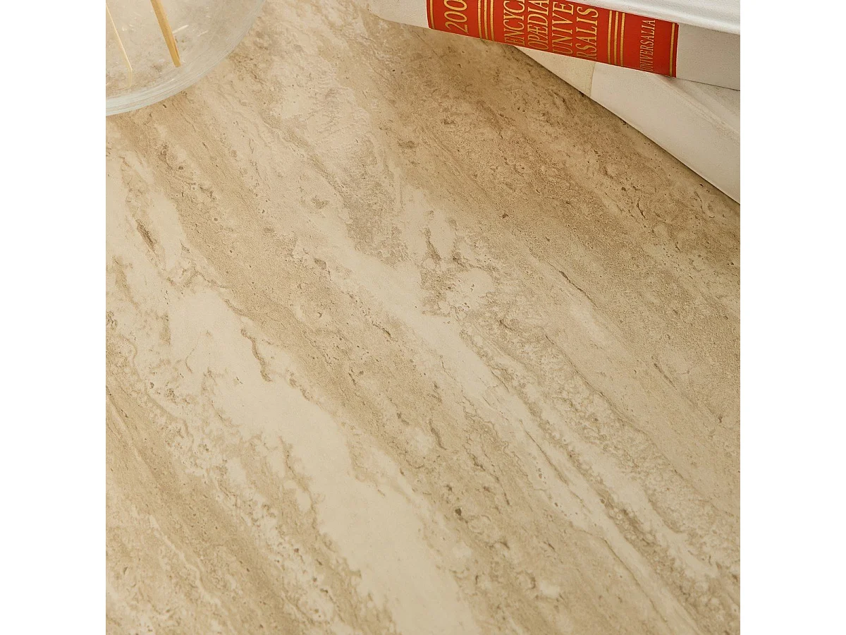 Lot de 2 tables basses rondes empilables décor travertin - MAIA
