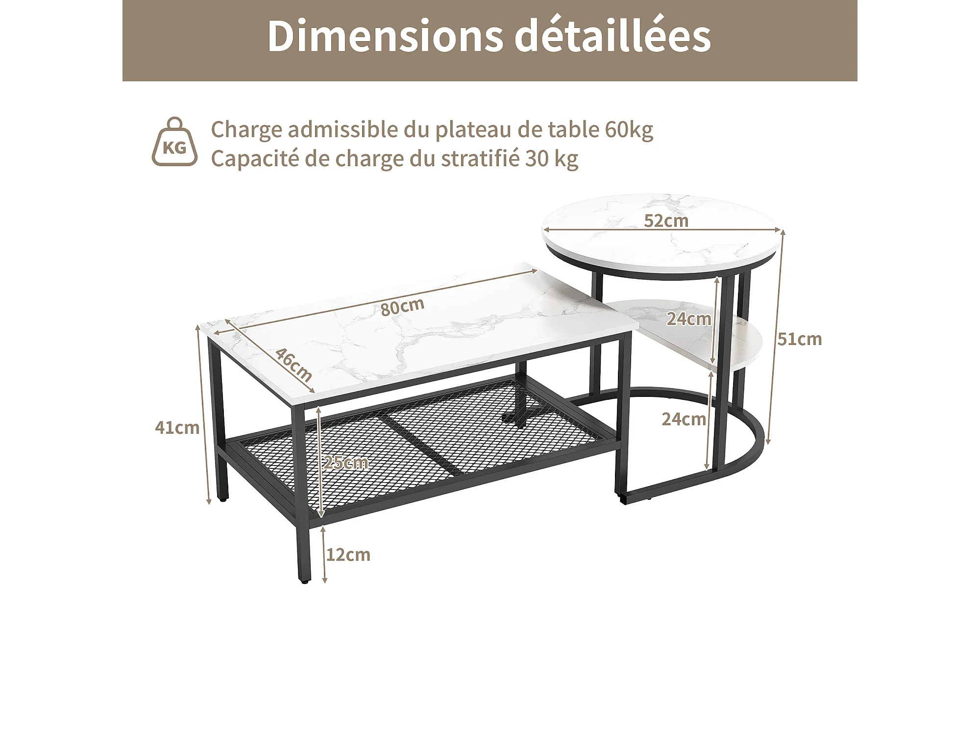 Table gigogne marbre