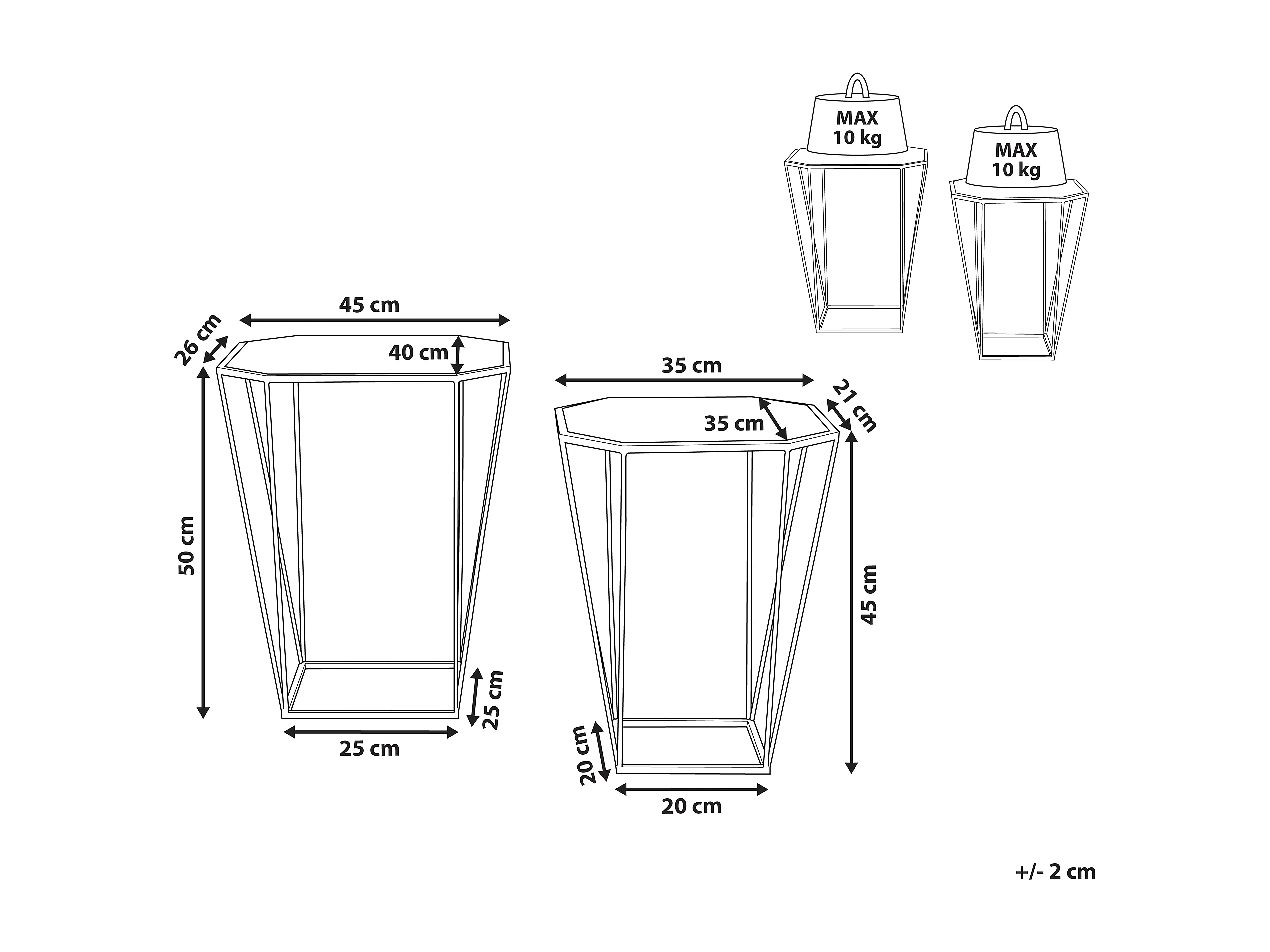 Lot de 2 tables d'appoint SIERRA Verre Doré