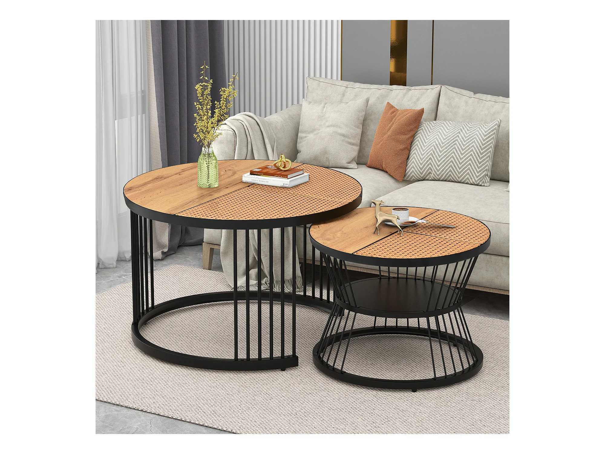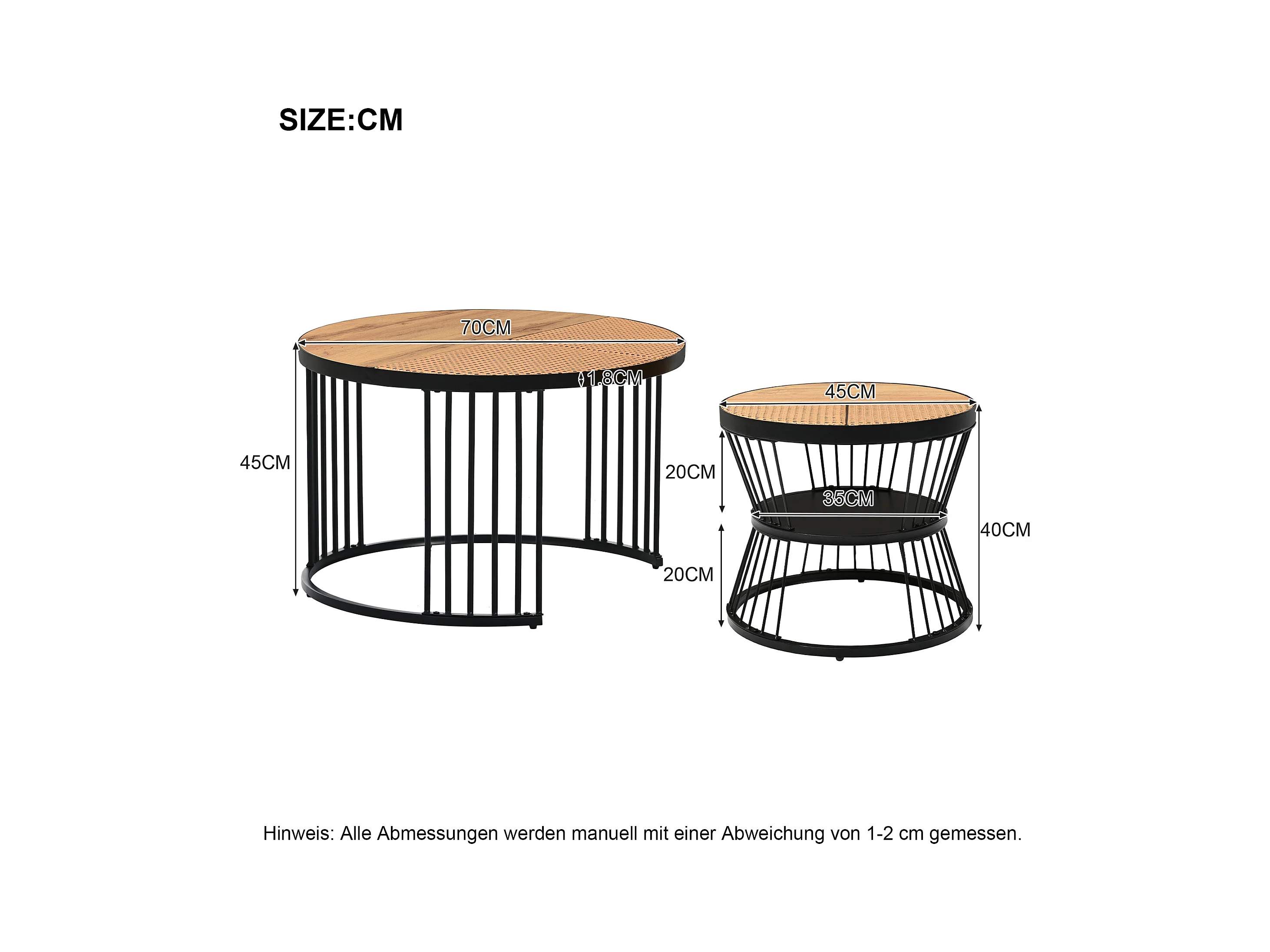 Lot de 2 tables d'appoint organiques avec rangement - Rotin - L. 52 x P. 40 x H. 45 cm et L. 43.5 x P. 30 x H. 33,5 cm - Naturel clair - MARSA