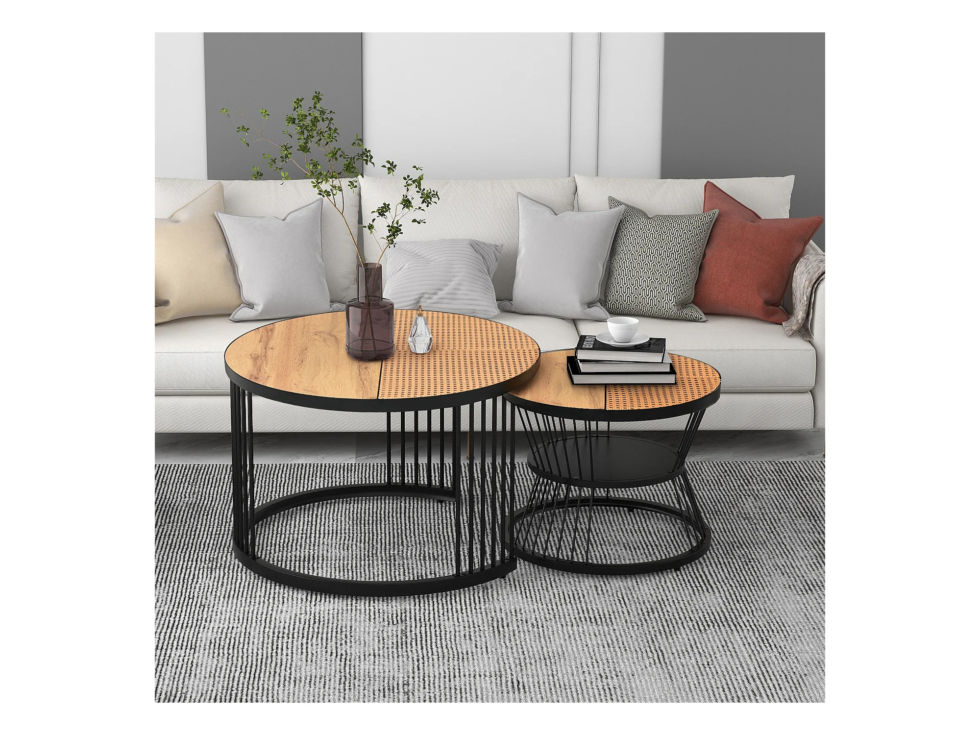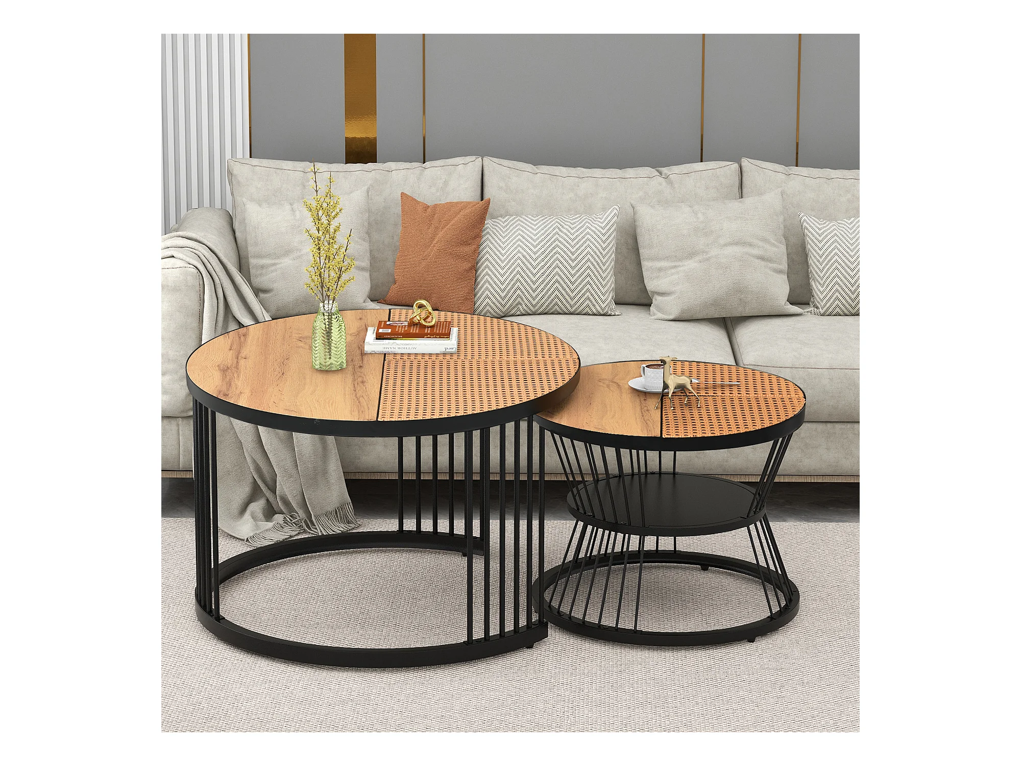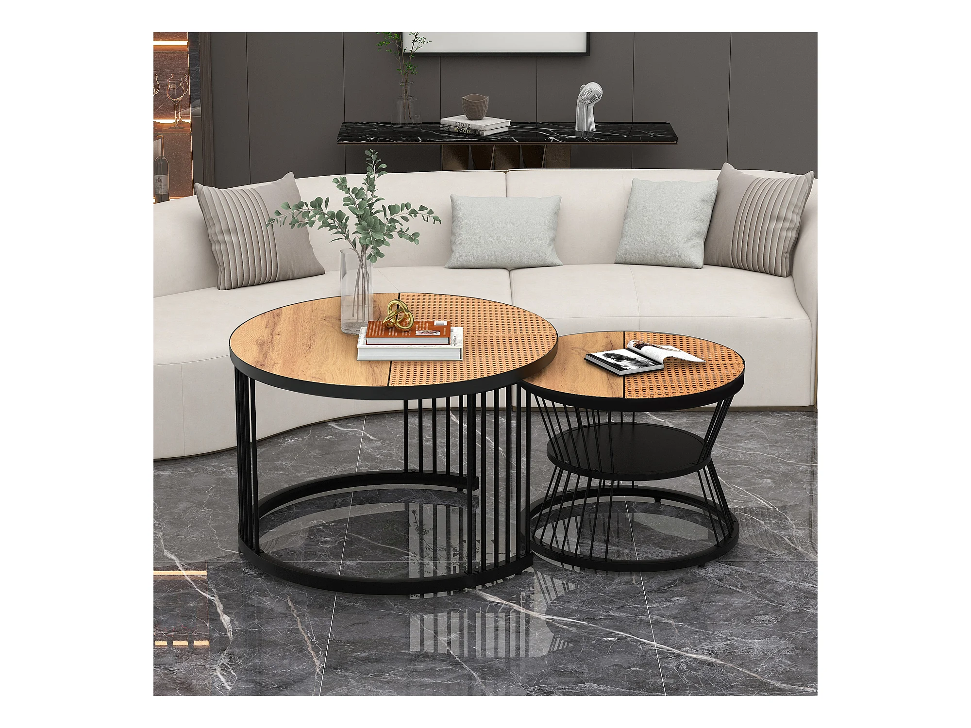 Lot de 2 tables basses rondes de salon - tables gigognes - Métal & MDF - Aspect résine - blanc