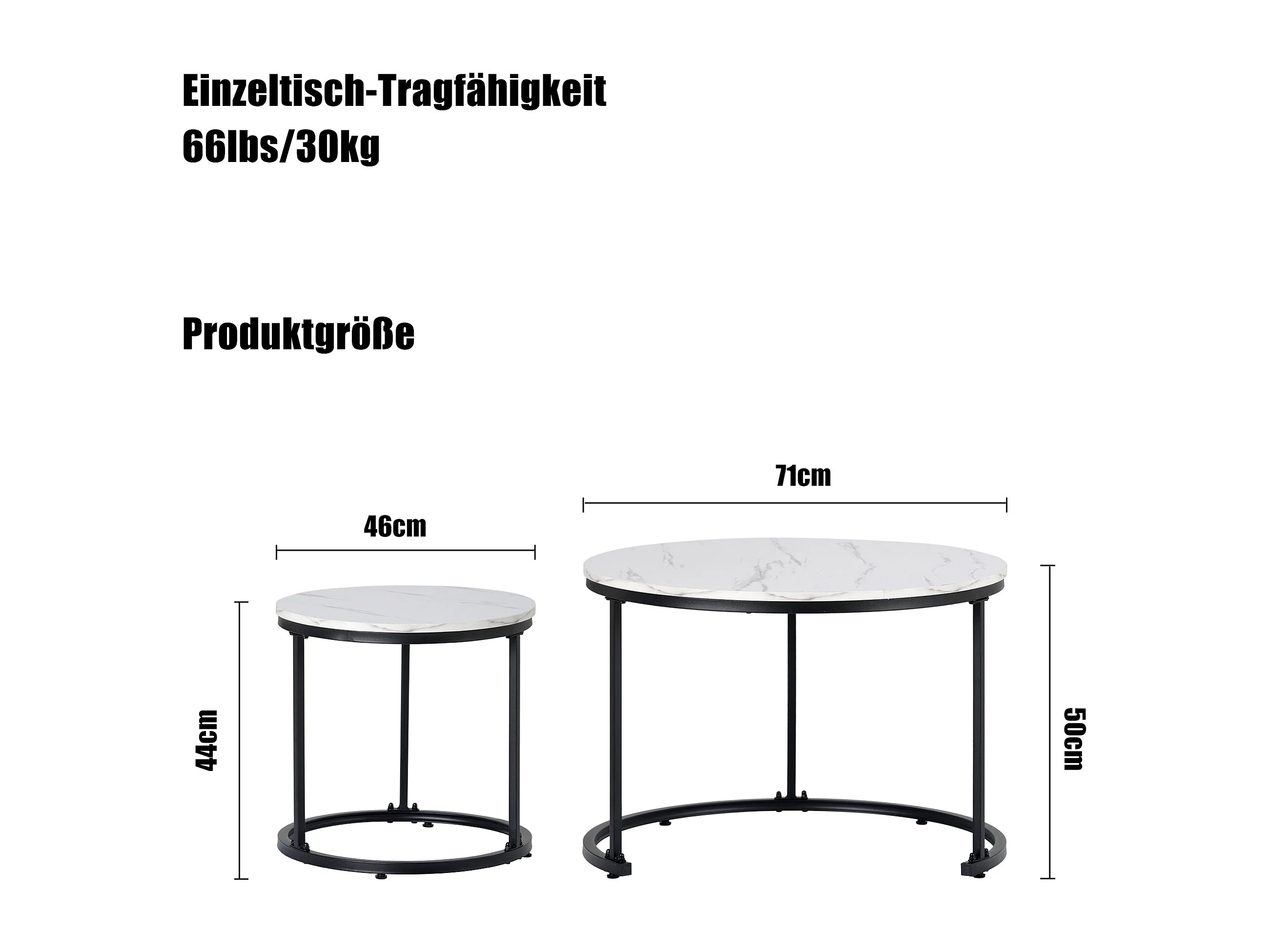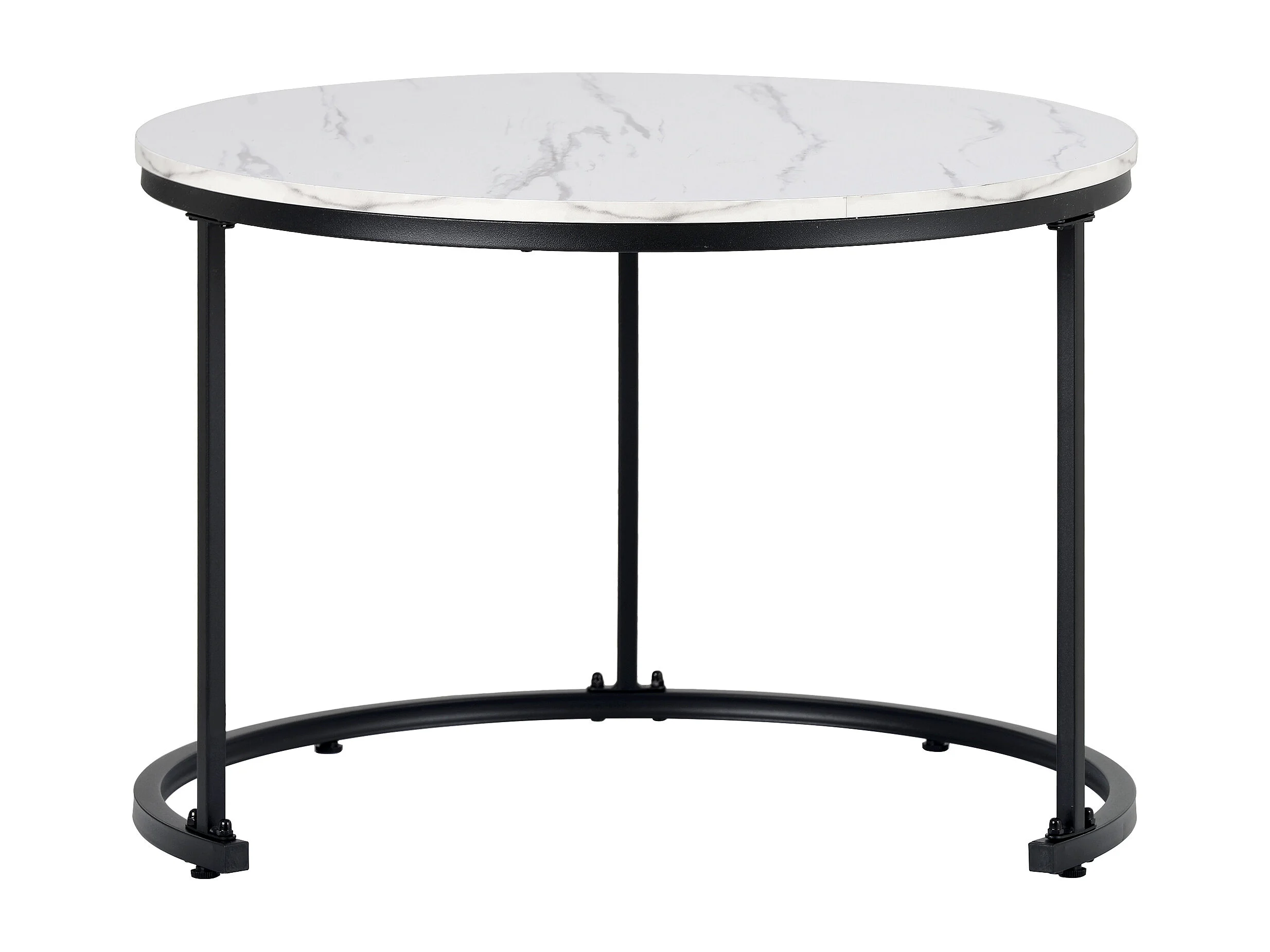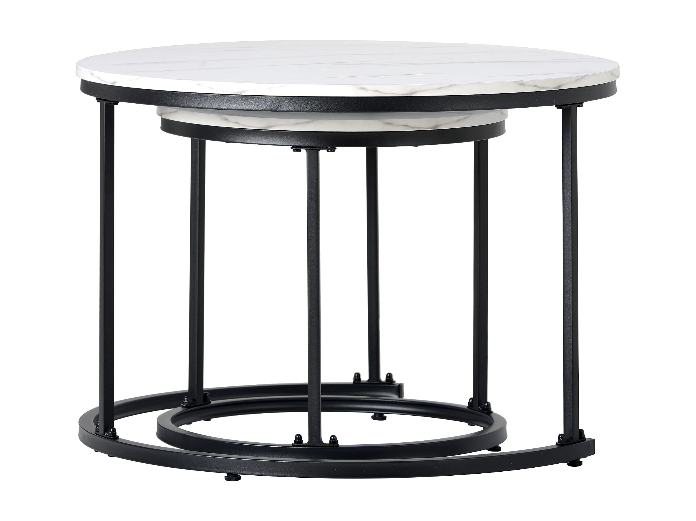 Lot de 2 tables basses gigognes rondes, 50x50x70.5 cm, design moderne, structure en métal, MDF motif marbre