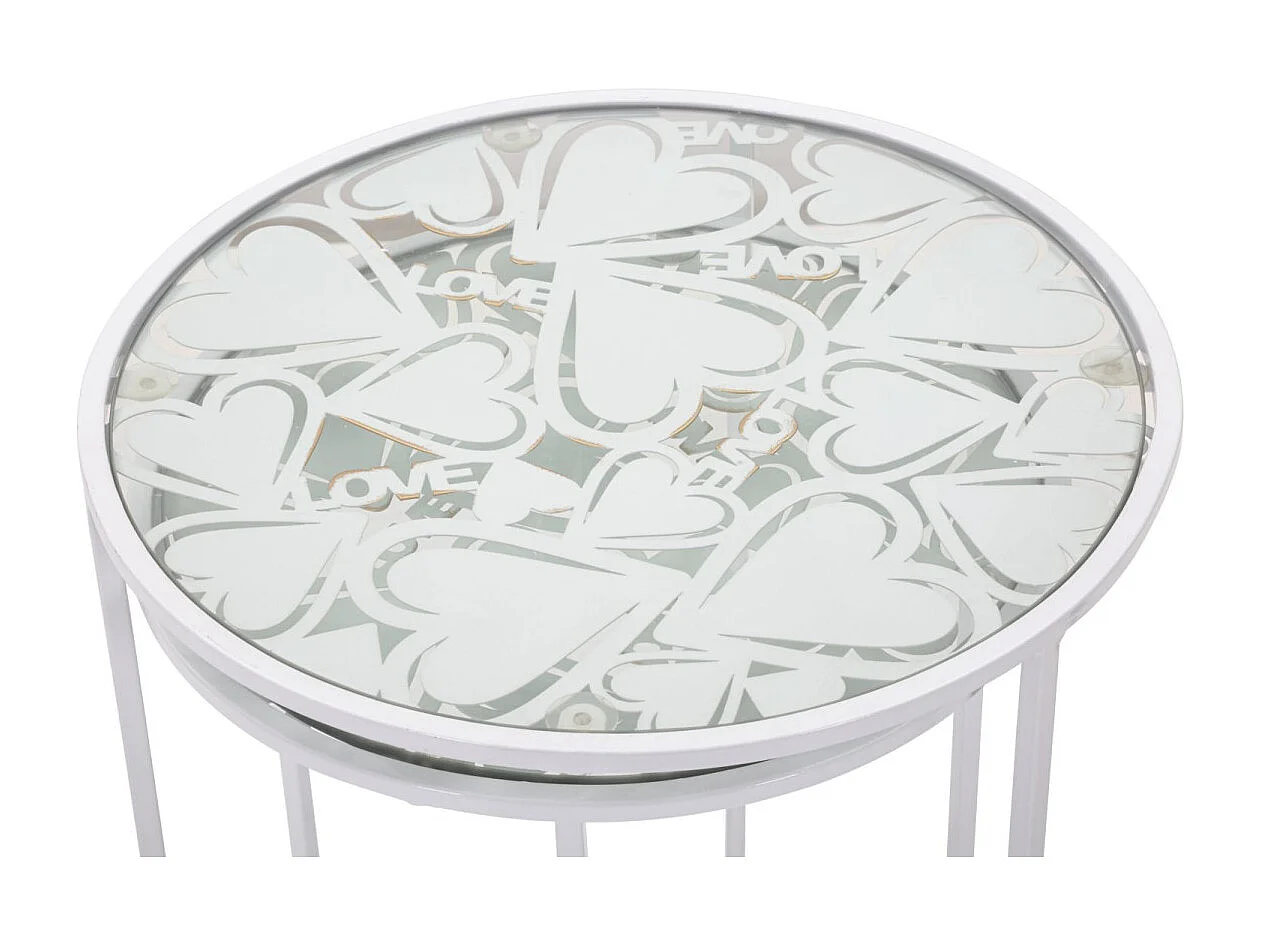Lot de 2 Tables d'Appoint Gigognes "Cœur" 60cm Blanc