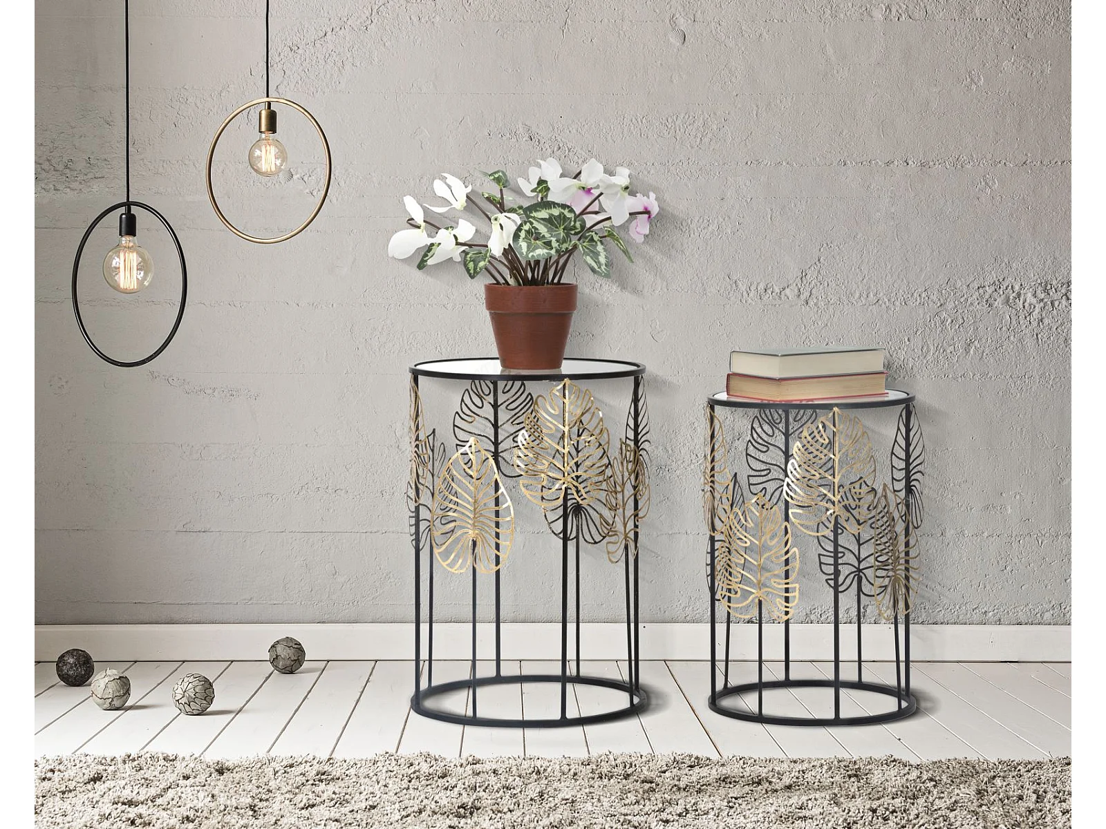 Lot de 2 Tables d'Appoint "Coppia" 55cm Noir & Or