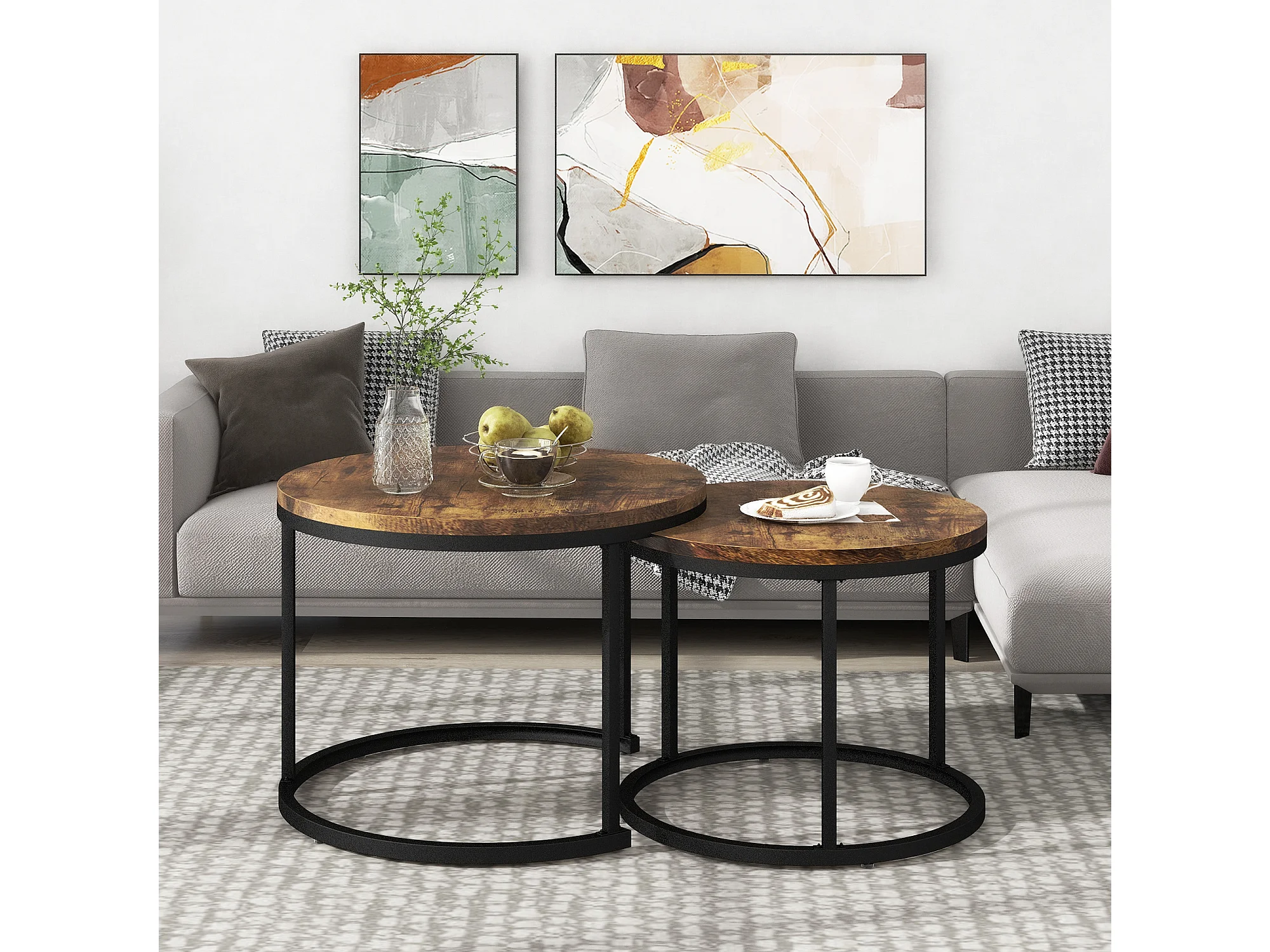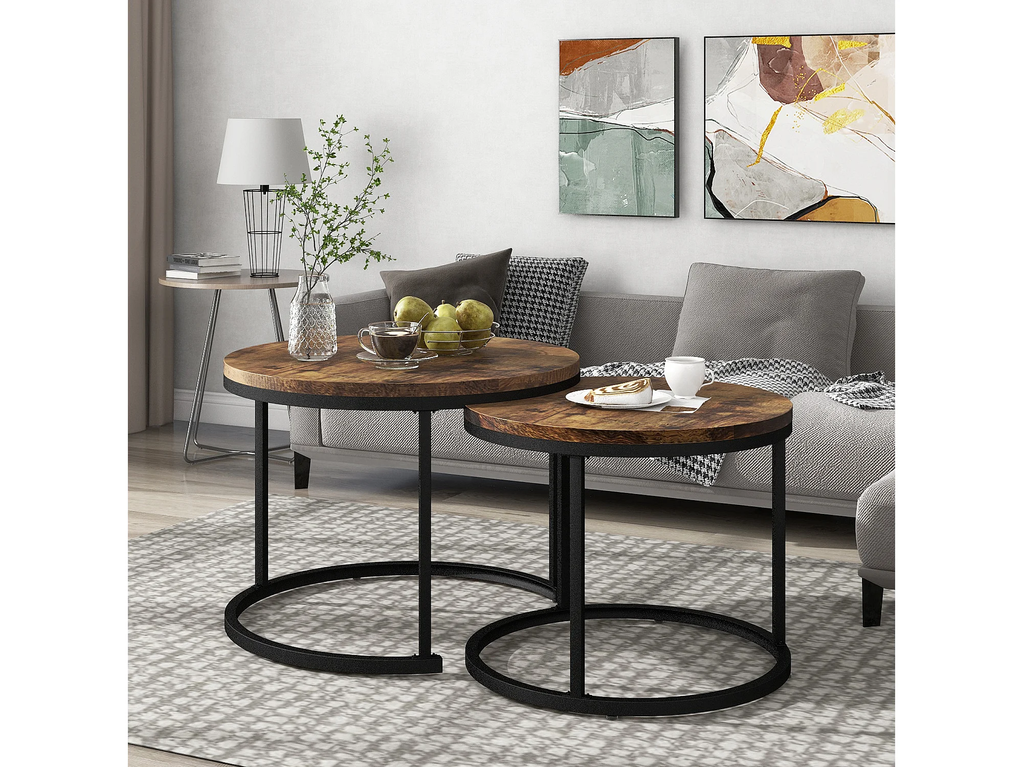 Lot de 2 tables basses rondes gigognes en chêne pour salon