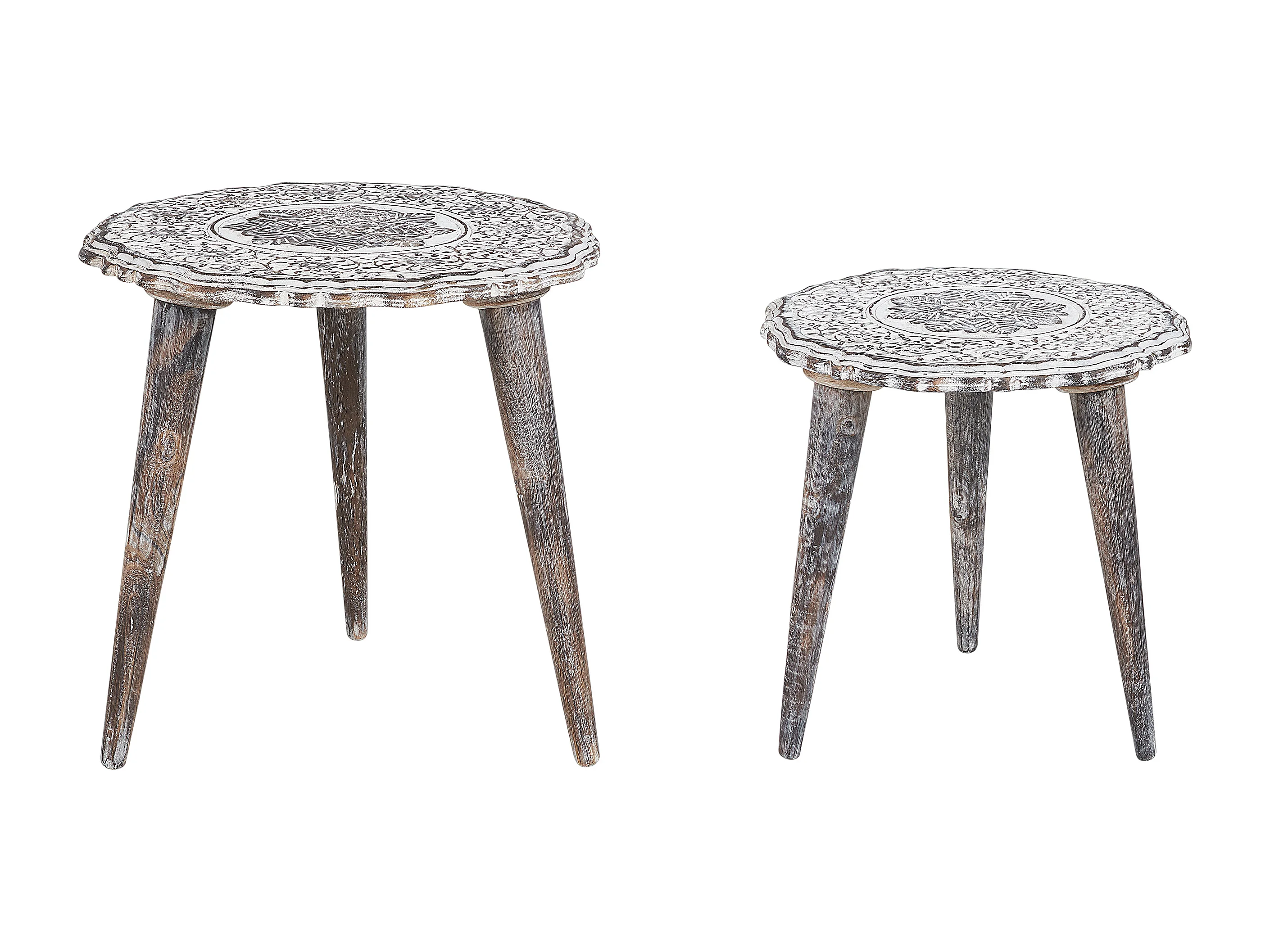 Lot de 2 tables d'appoint ADRO Bois de manguier Blanc cassé
