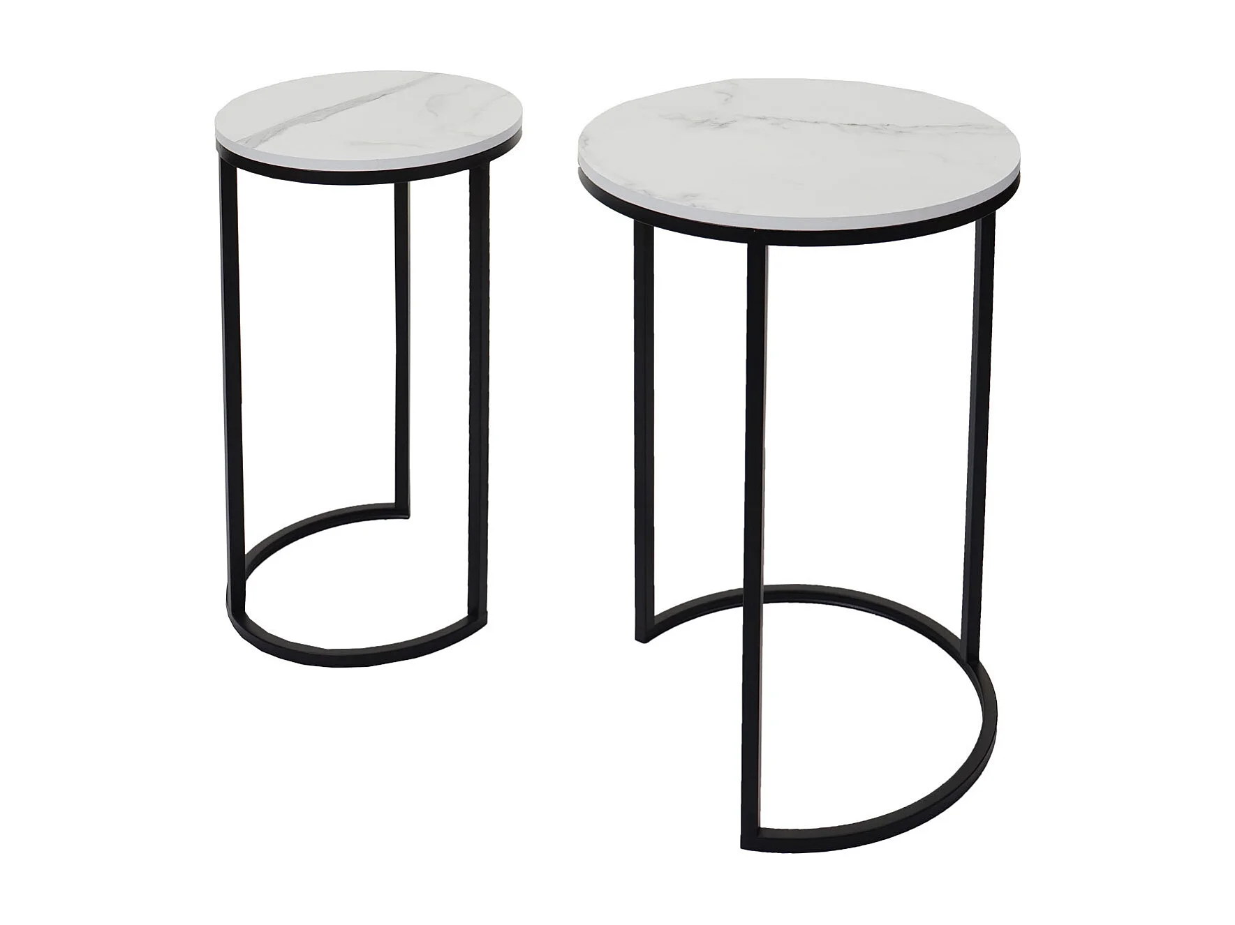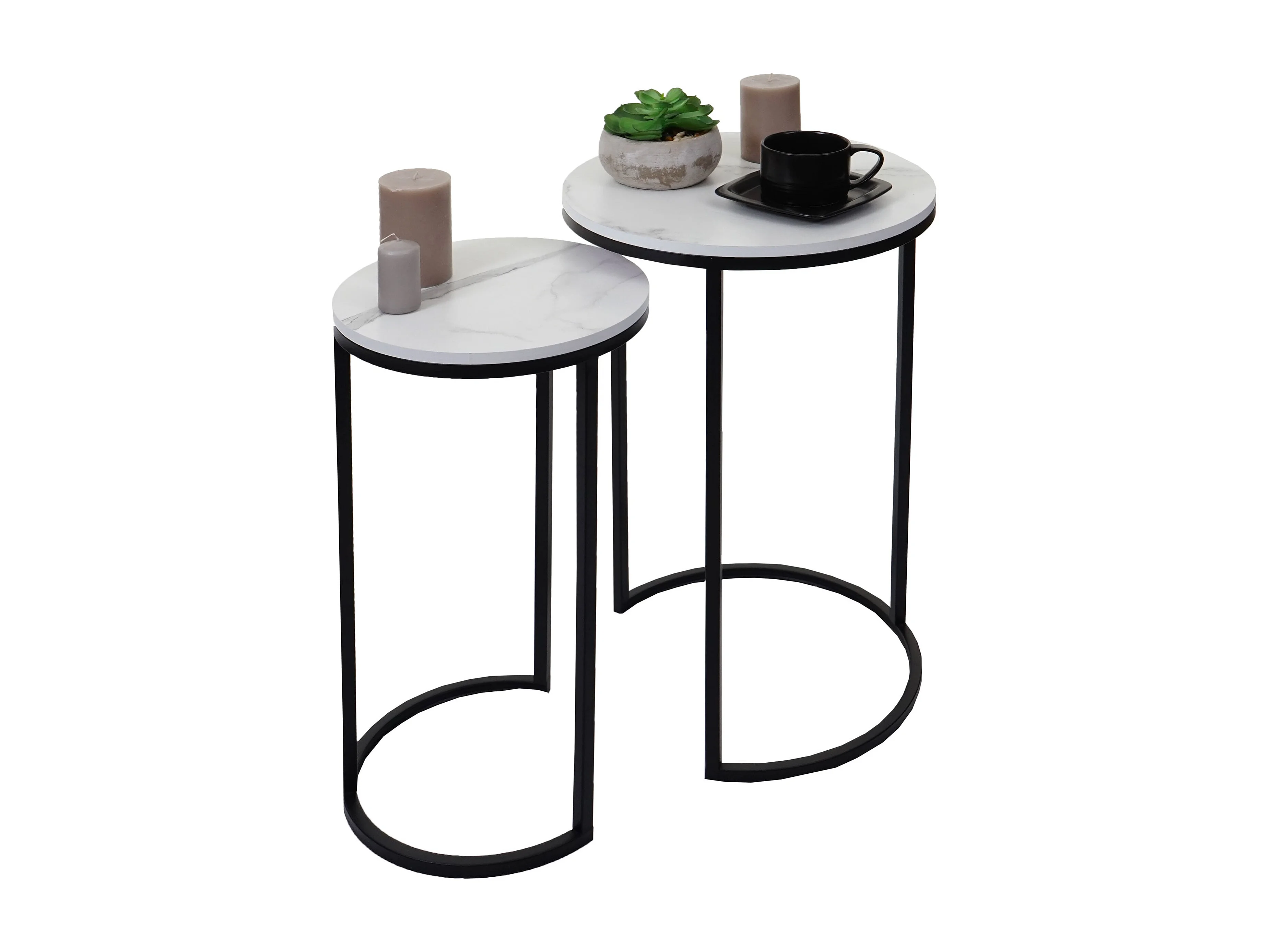 Lot de 2 tables d'appoint MCW-K46, blanc-noir