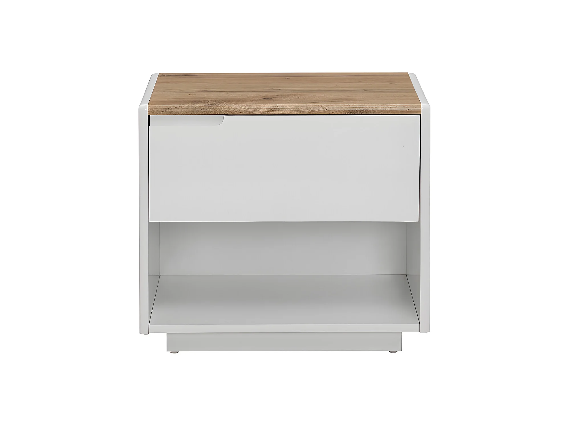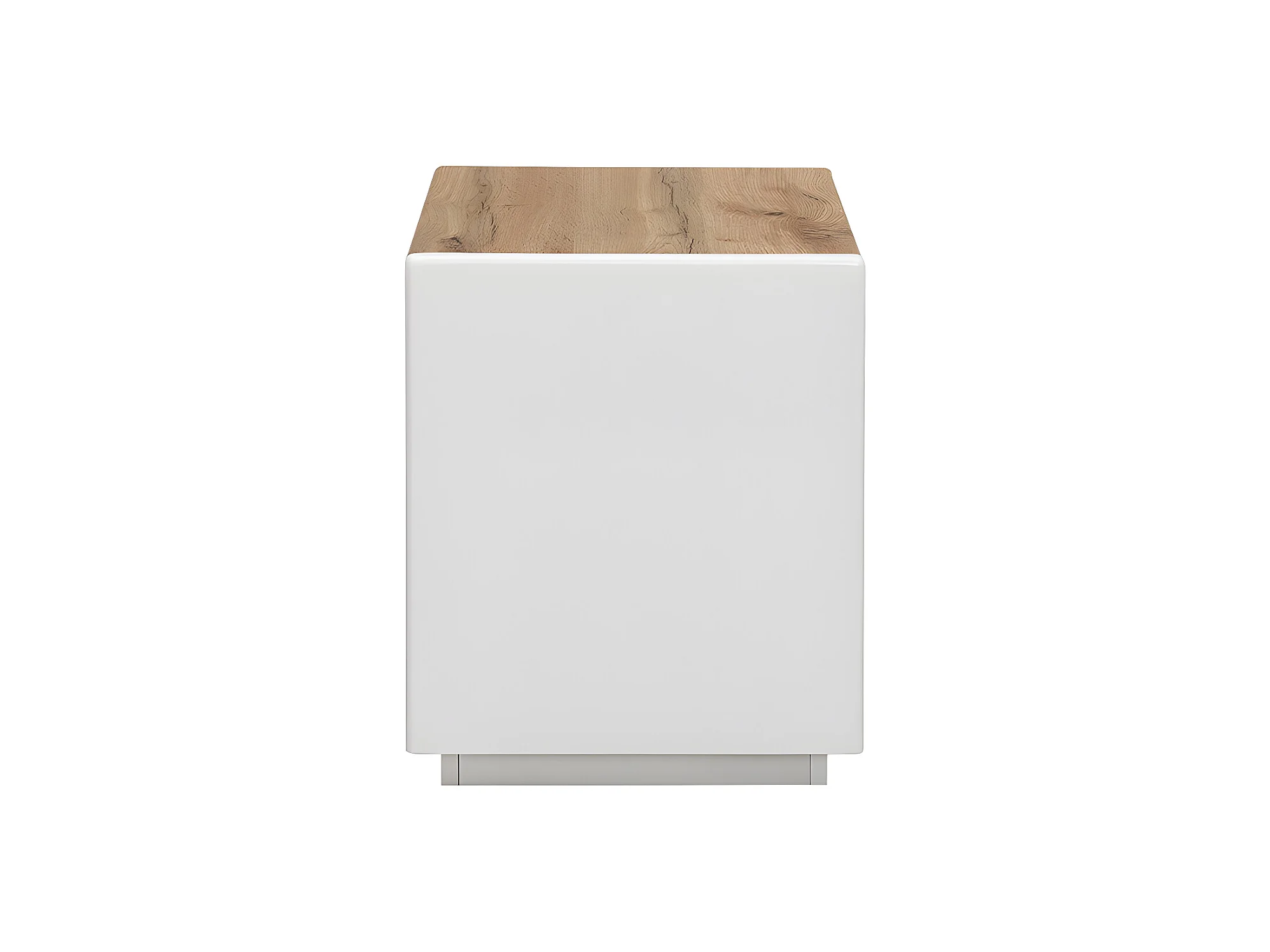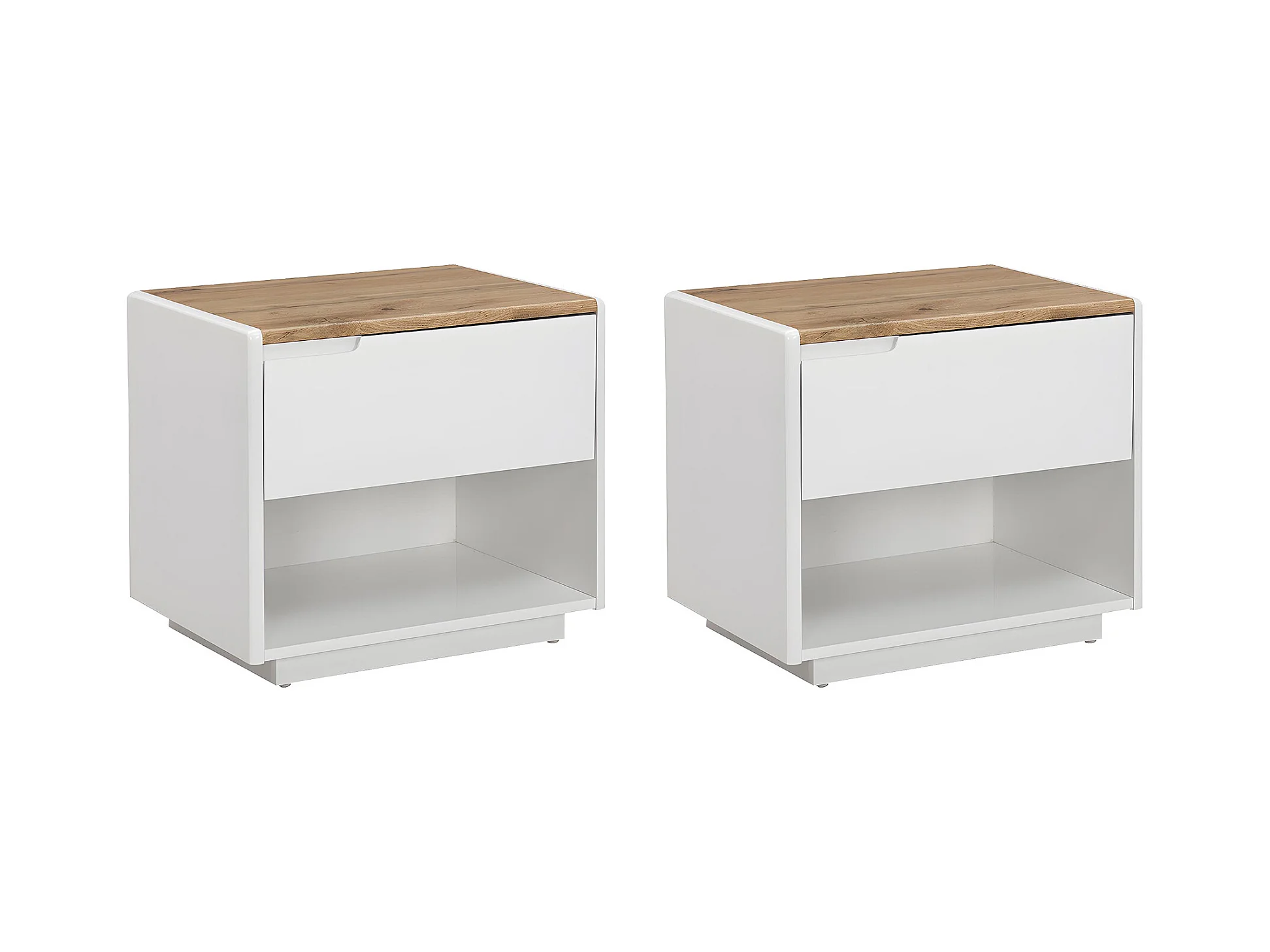 Lot de 2 tables de chevet - 1 tiroir et 1 niche - MDF - Blanc laqué et Chêne - AMANI