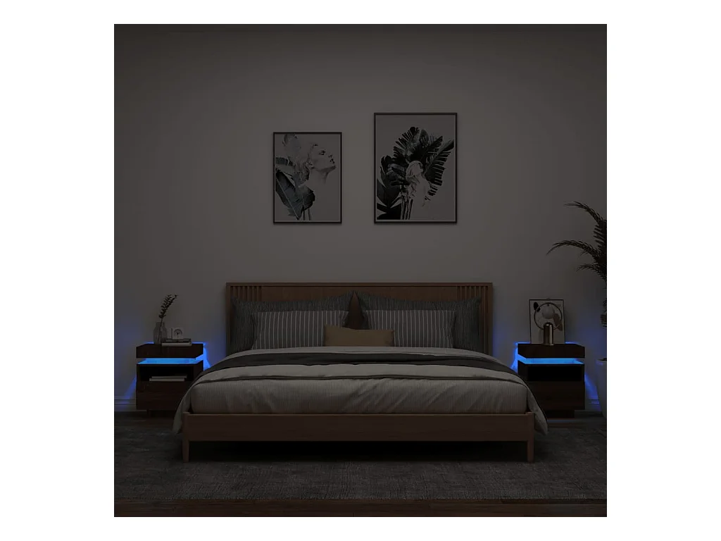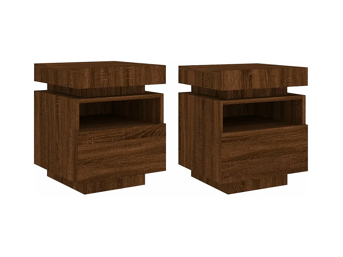 Armoires de chevet avec lumières LED 2 pièces chêne marron