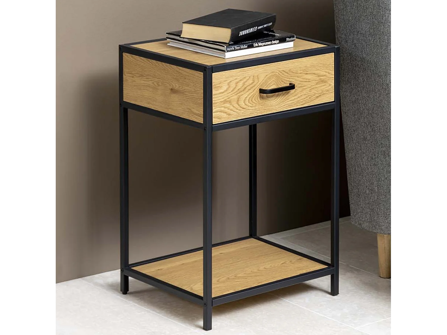 Lot de 2 tables de chevet avec tiroir bois et métal Factory
