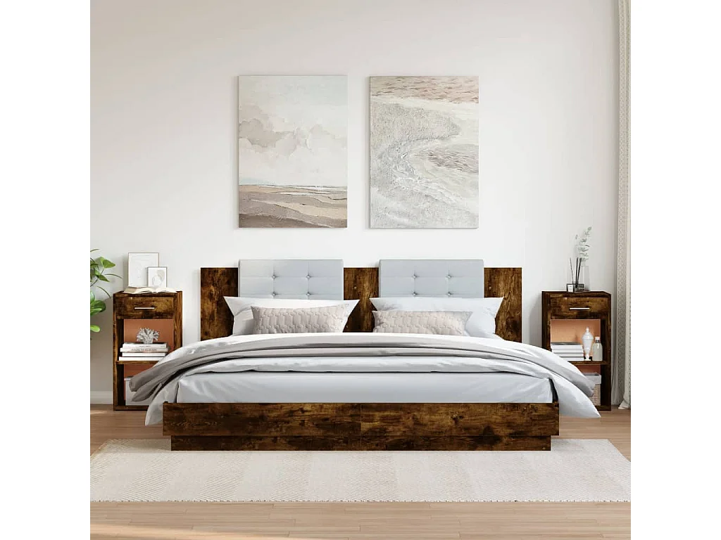 Lot de 2 Tables de chevet chêne fumé 35x34x65 cm bois ingénierie FR67443