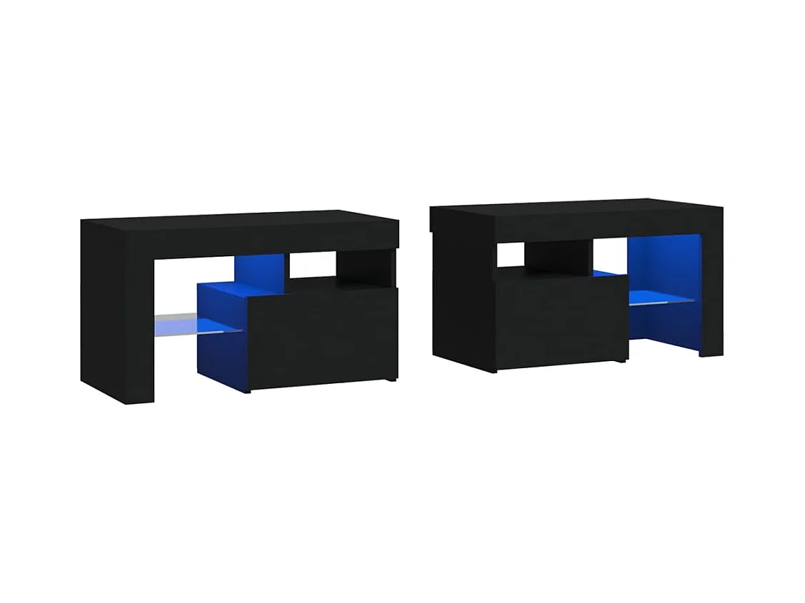 Lot de 2 Tables de chevet et lumières LED Noir 70x36,5x40 cm FR12012